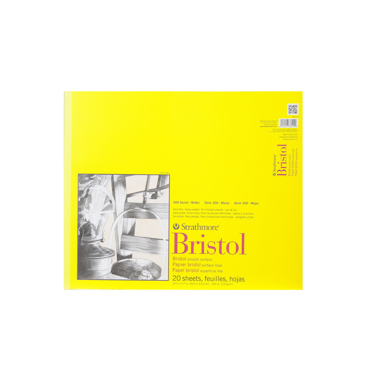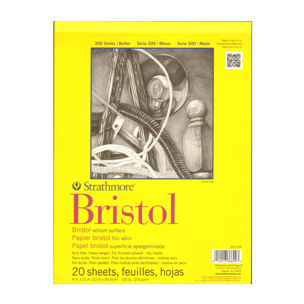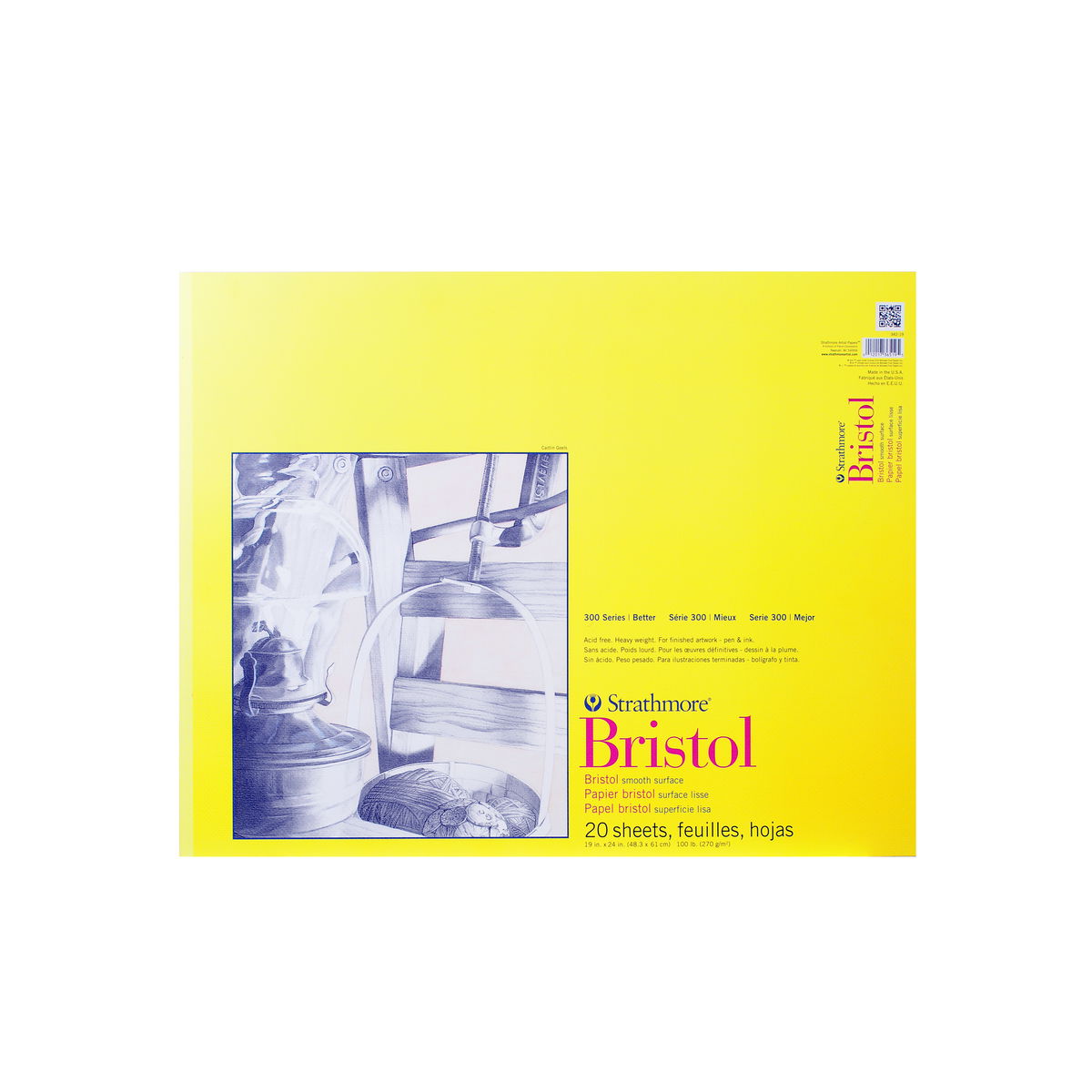 Este papel económico de gramaje alto (100 lb) no contiene ácido y está disponible en dos superficies: lisa y vitela. La lisa es ideal para dibujo fino con pluma y tinta, lápiz y dibujo mecánico. La vitela tiene un ligero relieve y está diseñada para una amplia gama de técnicas de dibujo y pintura, como crayón, lápiz, carboncillo, acuarela y gouache. Ambas superficies son ideales para aerógrafo. 20 hojas por bloc.