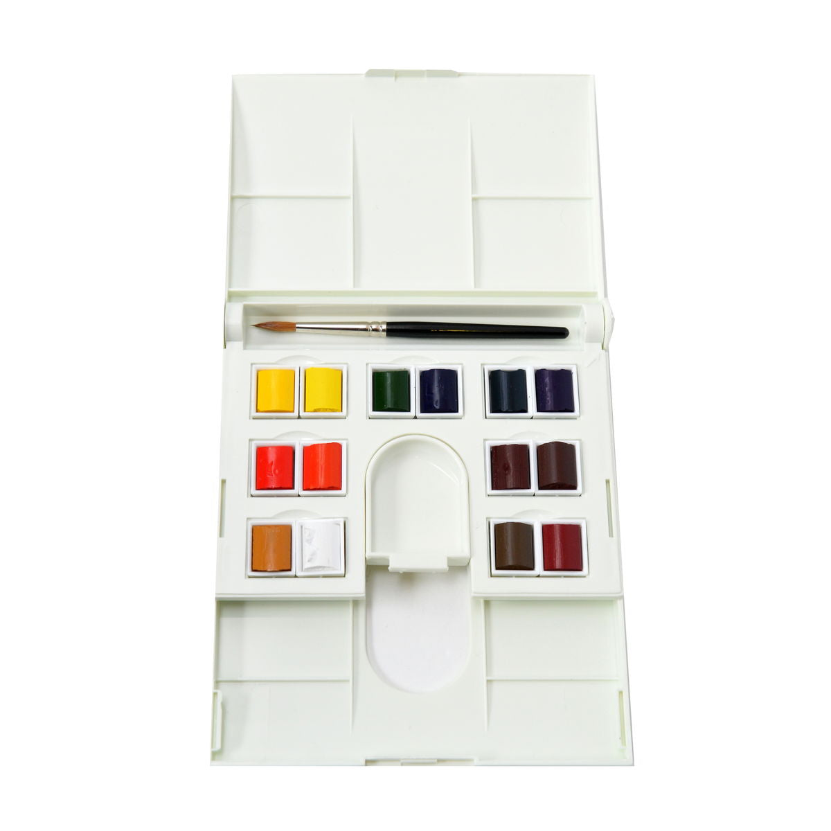 El trabajo serio con acuarela no termina al salir del estudio. Este set compacto ofrece acuarela de calidad profesional en un formato realmente portátil, con una construcción ligera de plástico que resiste las condiciones del campo y protege catorce colores de media pastilla cuidadosamente seleccionados para una completa gama de paisajes y temas. Winsor & Newton incluye su pincel redondo de marta cibelina Serie 16, ideal tanto para lavados amplios como para trabajos de detalle cuando el espacio es limitado.