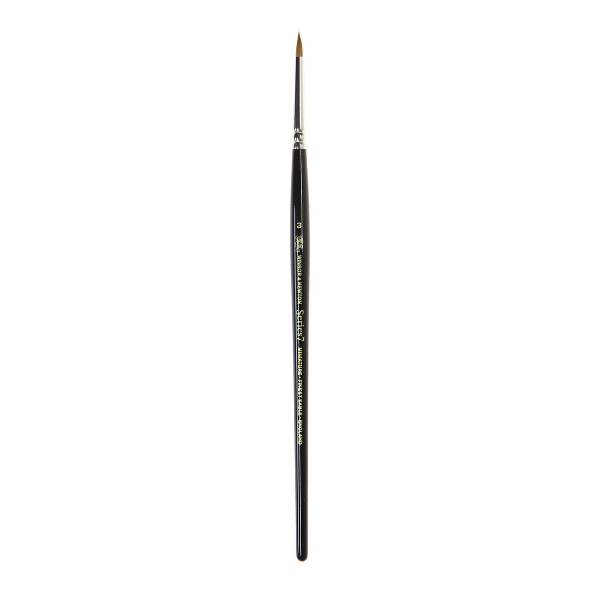 Winsor & Newton utiliza la misma marta Kolinsky cosechada en invierno que se utiliza en toda la línea Serie 7: pelo afilado y pulido que forma una punta perfecta y mantiene su elasticidad durante miles de pinceladas. Las virolas niqueladas sin costuras previenen la corrosión y la pérdida de pelo, mientras que los mangos cortos, negros y pulidos proporcionan el agarre firme que prefieren los pintores de miniaturas. Cada pincel se somete a una inspección de calidad individual antes de salir del taller.