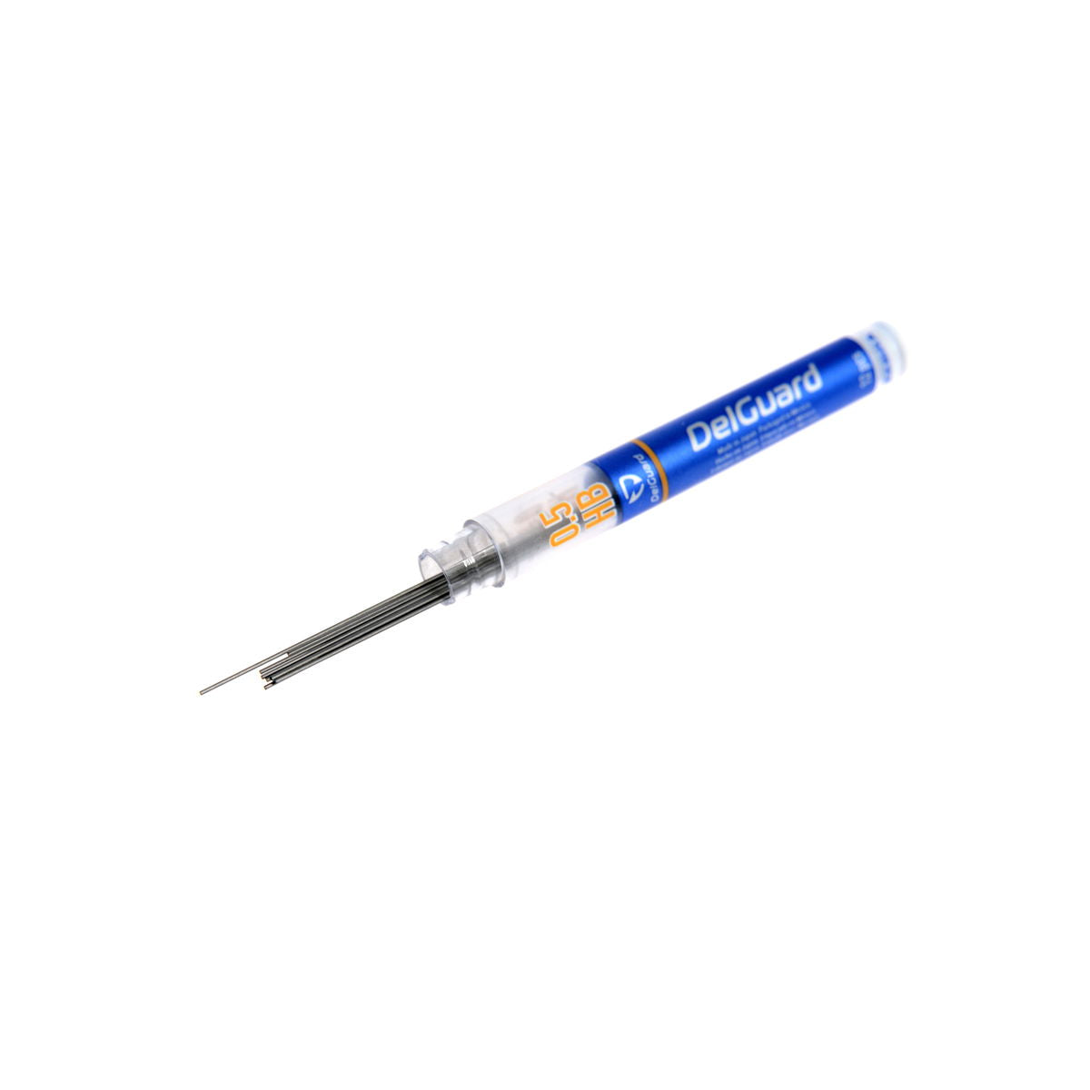 Cada tubo contiene varias minas de su grado preferido: 2B para bocetos audaces, HB para escritura general o grados más duros para bocetos de precisión. Tenga minas adicionales a mano; el sistema DelGuard funciona de maravilla, pero solo cuando se combina con minas diseñadas para complementar su diseño.