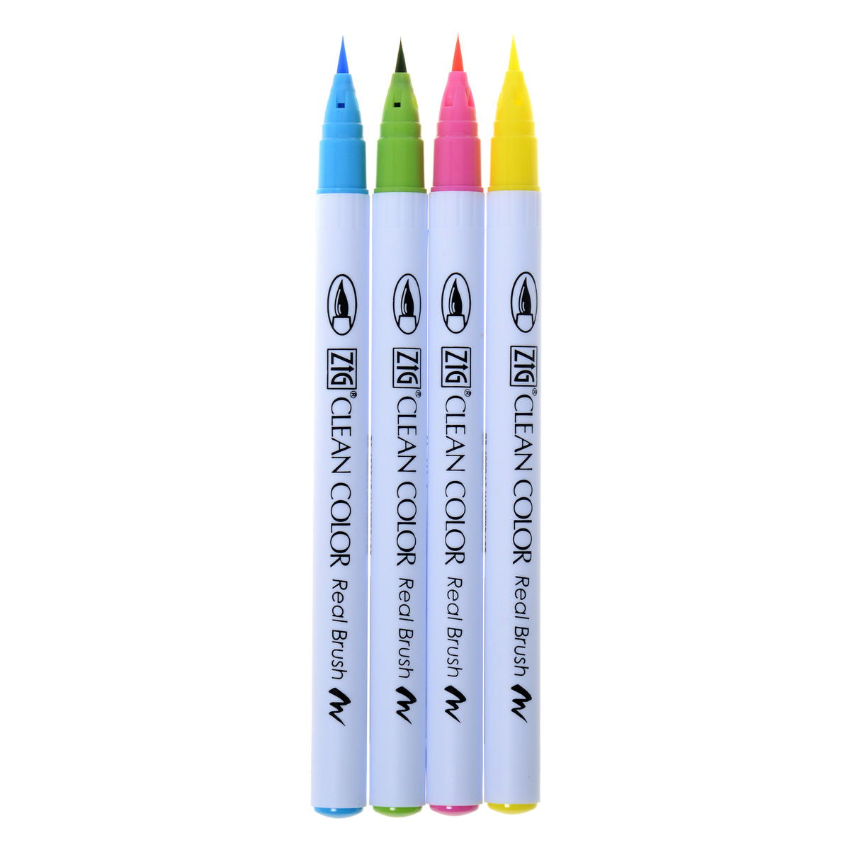Punta flexible e infinitas posibilidades de difuminado. Los marcadores Zig Clean Color Real Brush cuentan con tinte a base de agua, inodoro y sin xileno, y una punta de pincel de cerdas de nailon de una sola cara. La punta es pequeña, muy flexible y posee una elasticidad increíble, lo que permite que fluya fácilmente entre líneas finas y gruesas con una sola pasada. Los marcadores Clear Color Real Brush son ideales para todo tipo de arte, como scrapbooking, estampado de goma, ilustración, viñetas, bellas artes, lettering con pincel y creación de tarjetas. ¡Úsalos con Zig Blender para obtener efectos de difuminado increíbles!