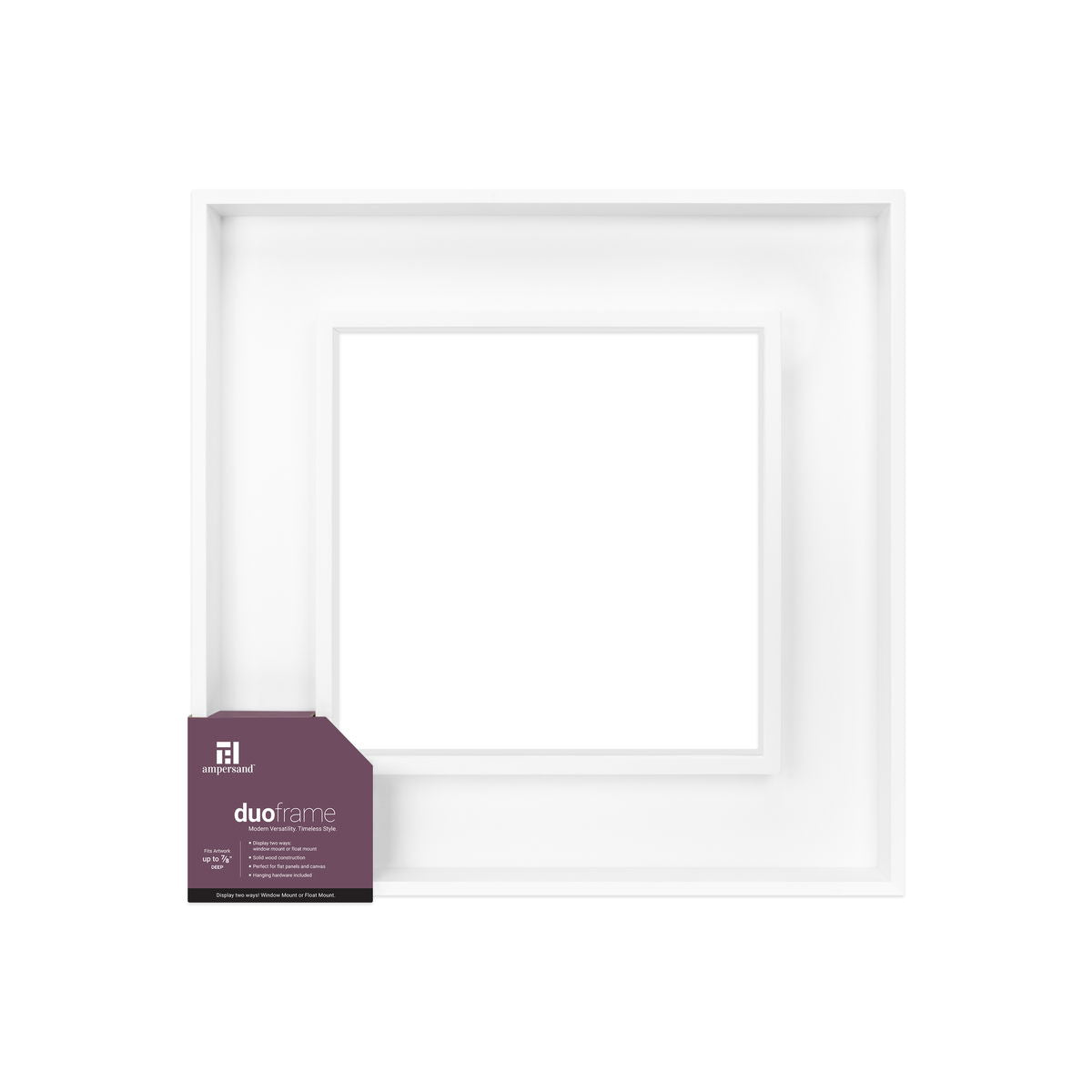 Solid wood construction meets genuine versatility in these ready-made St. Ives style frames. Duoframes handle both window mounting (artwork visible through the opening) and float mounting (artwork set within the frame cavity), letting you adapt presentation to each piece. The 7/8-inch depth accommodates flat panels and stretched canvas, while the clean profile keeps focus on the work itself.