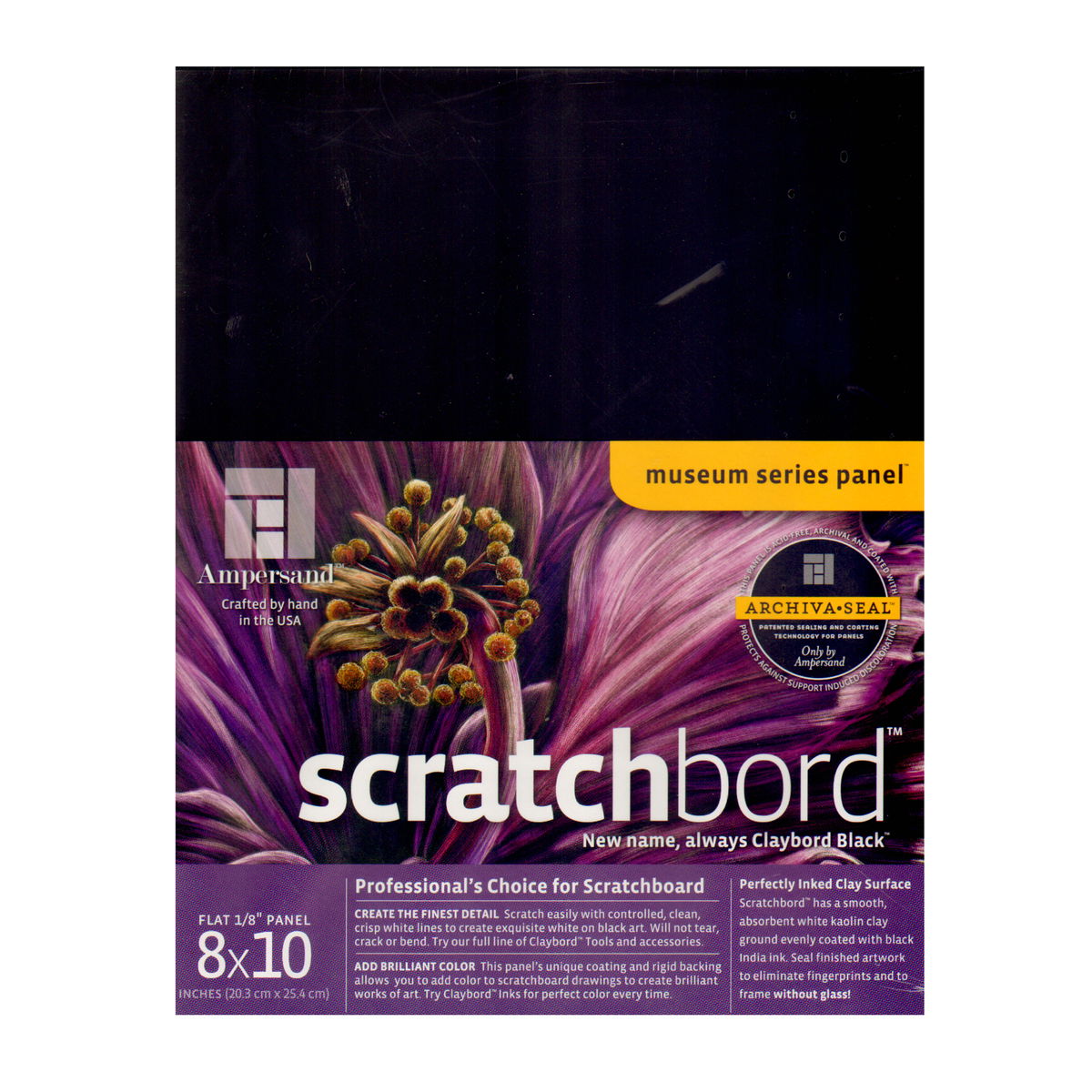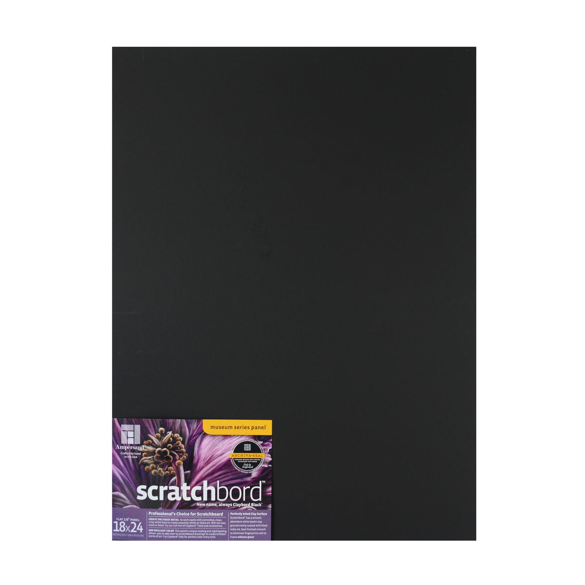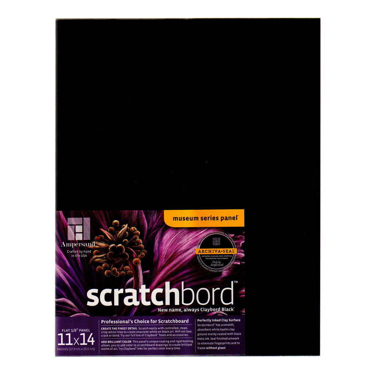 These clay-coated panels have a final coat of Higgins Waterproof India Ink. Using a scratch knife, hobby knife, or an abrasive like steel wool, artists can remove the ink and expose the white clay underneath. Claybord Black can be used to create exquisite line drawings and black and white illustration.