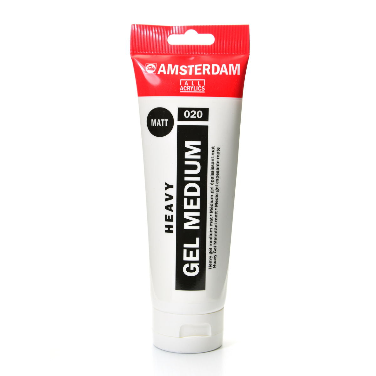 Amsterdam Acrylic Gel Mediums are the ideal choice for artists, students, and crafters interested in adding volume and dimension to their artwork and projects. These quality, versatile mediums work well with any brand of acrylic color, with a wide array of additives, and on virtually any surface. Gel Medium This medium allows color to be extended or made more transparent without affecting viscosity. It can also be used for gluing all kinds of materials. Heavy Gel Medium -- This heavy gel allows thicker layers of acrylic color to be applied in one stroke. It increases transparency and brush stroke without affecting viscosity. It s also great for gluing heavier materials. Extra Heavy Gel Medium This thickest of gel mediums increases brush stroke considerably, allowing the application in one stroke of extremely thick layers of acrylic color. It also increases transparency and can be used for gluing heavier materials. Each acrylic gel medium comes in 2 forms -- glossy, for increasing the degree of gloss, and matte, for reducing the degree of gloss. Amsterdam Acrylic Gel Mediums are non-hazardous and clean up easily with water. They come in 250 ml, hang-able plastic tubes with convenient, easy open lids.