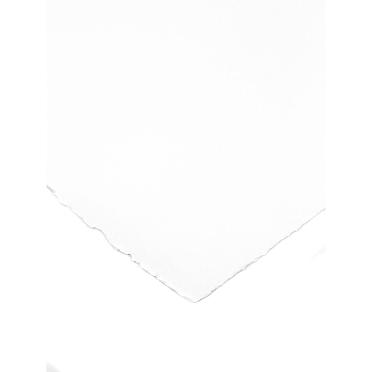 This 100% rag, water-marked watercolor paper is mould-made in France. The sheets are hand inspected for consistency and quality in surface, texture, and performance. Because the paper has been sized both in the beater and again after the sheet has been formed, repeated erasures can be done without any feathering. Special felts give a handsome grain finish to the cold pressed paper. Hot pressed sheets have a consistently smooth surface. All sheets have four deckle edges.