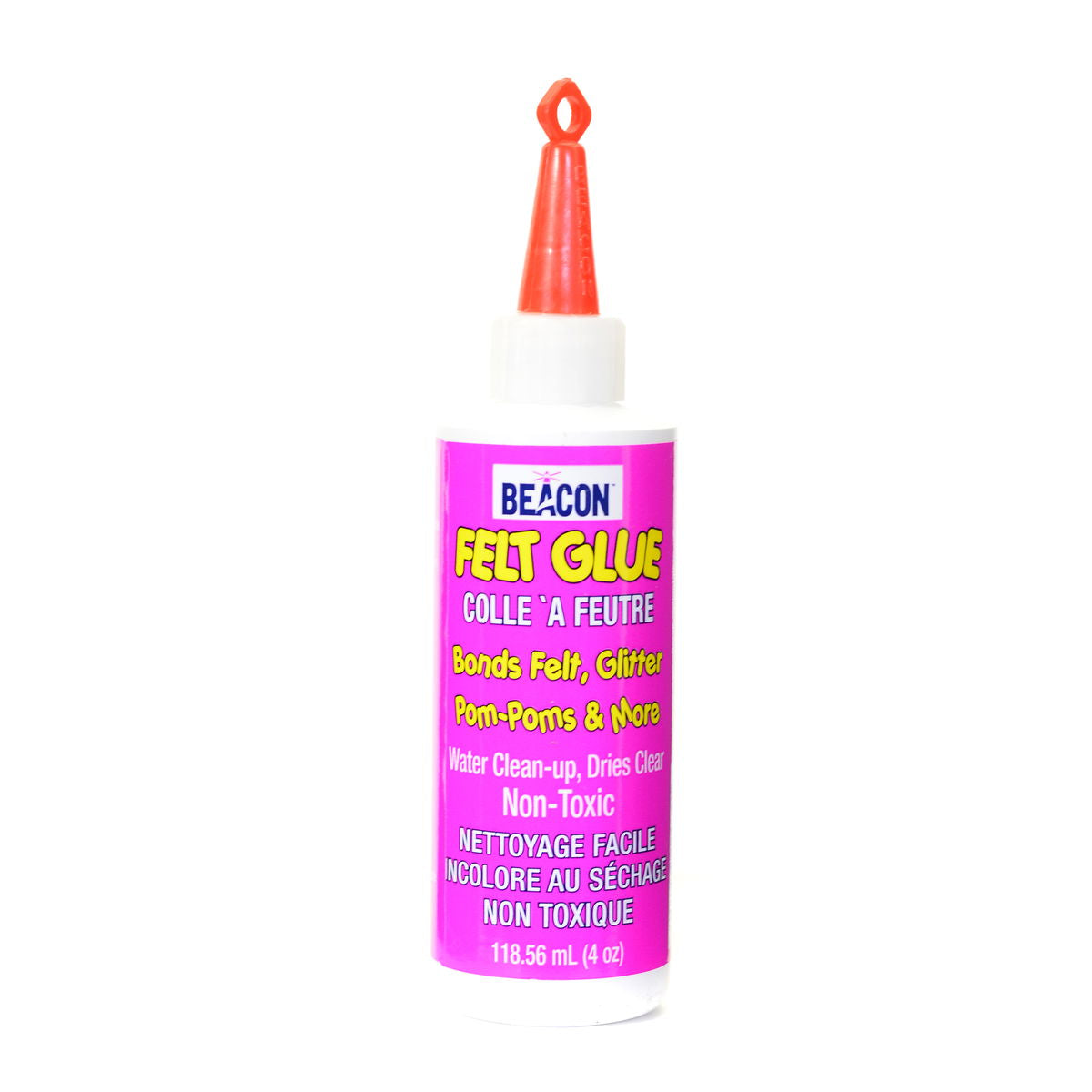 This glue creates a strong bond for felt, glitter, pom-poms, and more. Felt Glue dries clear. It is non-toxic and cleans up easily with soap and water. Great for children's projects.