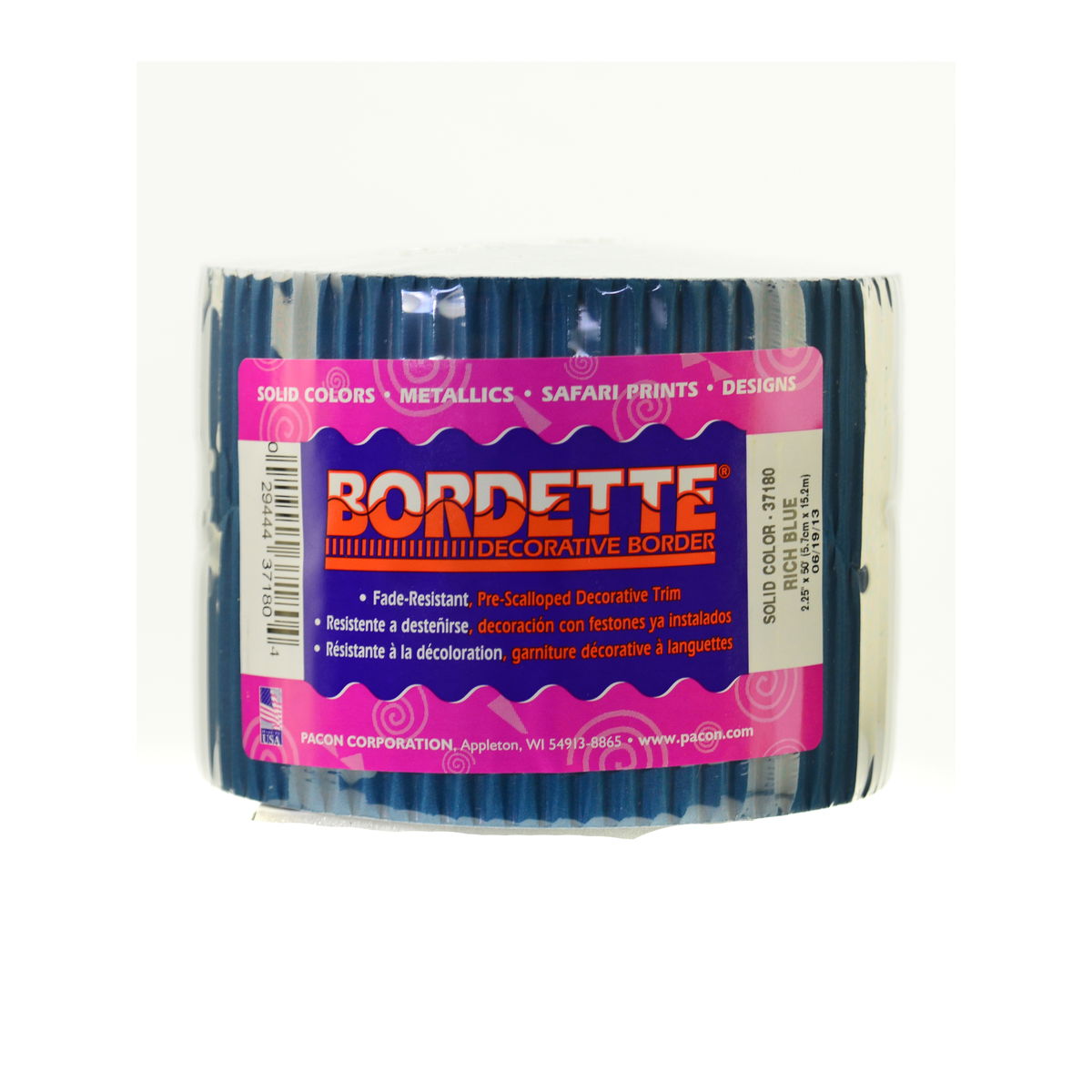 2 1/4 in. x 50 ft. rolls. Poly-packaged. Corrugated art paper in narrow scalloped rolls. Ideal for colorful borders around the classroom.