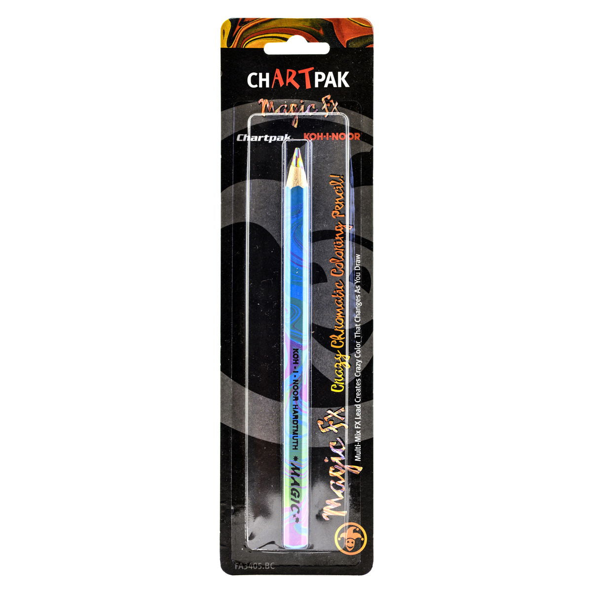 Create wild and bizarre color effects with a swipe of your hand. One-of-a-kind Multi-Mix FX Lead blends four colors together for a constantly changing color mix. Every time you twist your wrist the Magic FX, the color pattern is different. Hexagonal non-toxic pencil enrobed in mind-bending colors. 6 7/8 in. long.