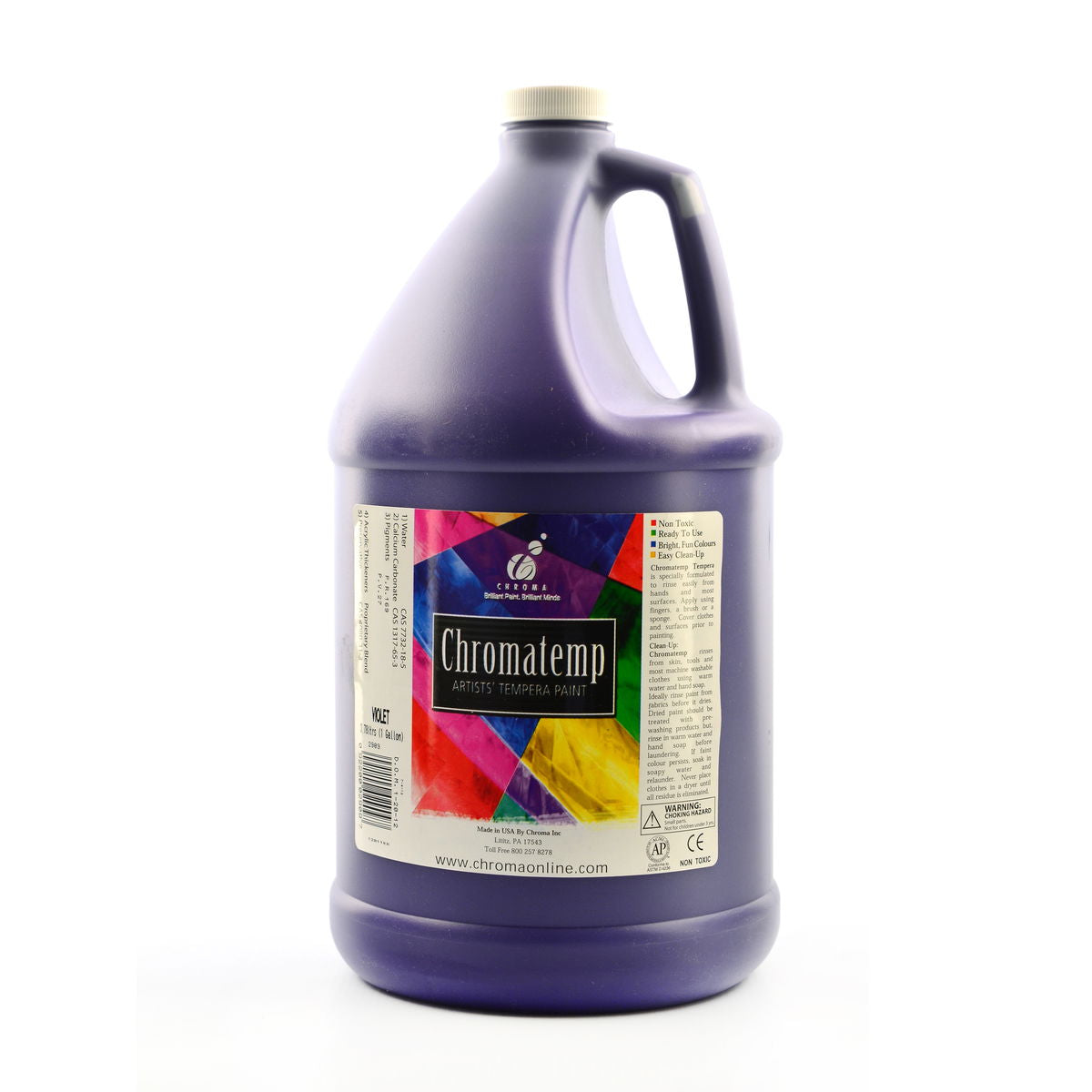 ChromaTemp is quality liquid tempera formulated for posters, windows, and crafts. Will not settle or separate. Brilliant, vibrant, and opaque colors are all intermixable and clean up with water. Some colors are also available in metallic or fluorescent. Use with brushes, rollers, fingers, or a sponge. High quality, pigment rich ChromaTemp is designed to be used full strength. Non-toxic CP seal-approved. Packaged in unbreakable plastic bottles.