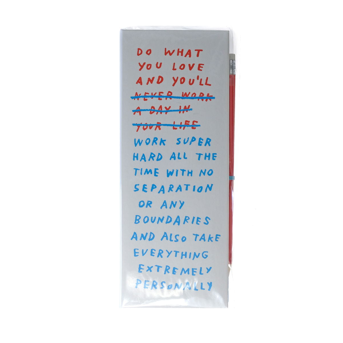 This notepad understands. It understands your hustle, your passions, your exhaustion. Based on Adam J. Kurtz's super-popular print, this list ledger helps you separate work and life in a balanced way. Portfolio with elastic loop closure, 3.5 x9 2 notepads (unlined) Pencil with eraser. ISBN: 9781452184210