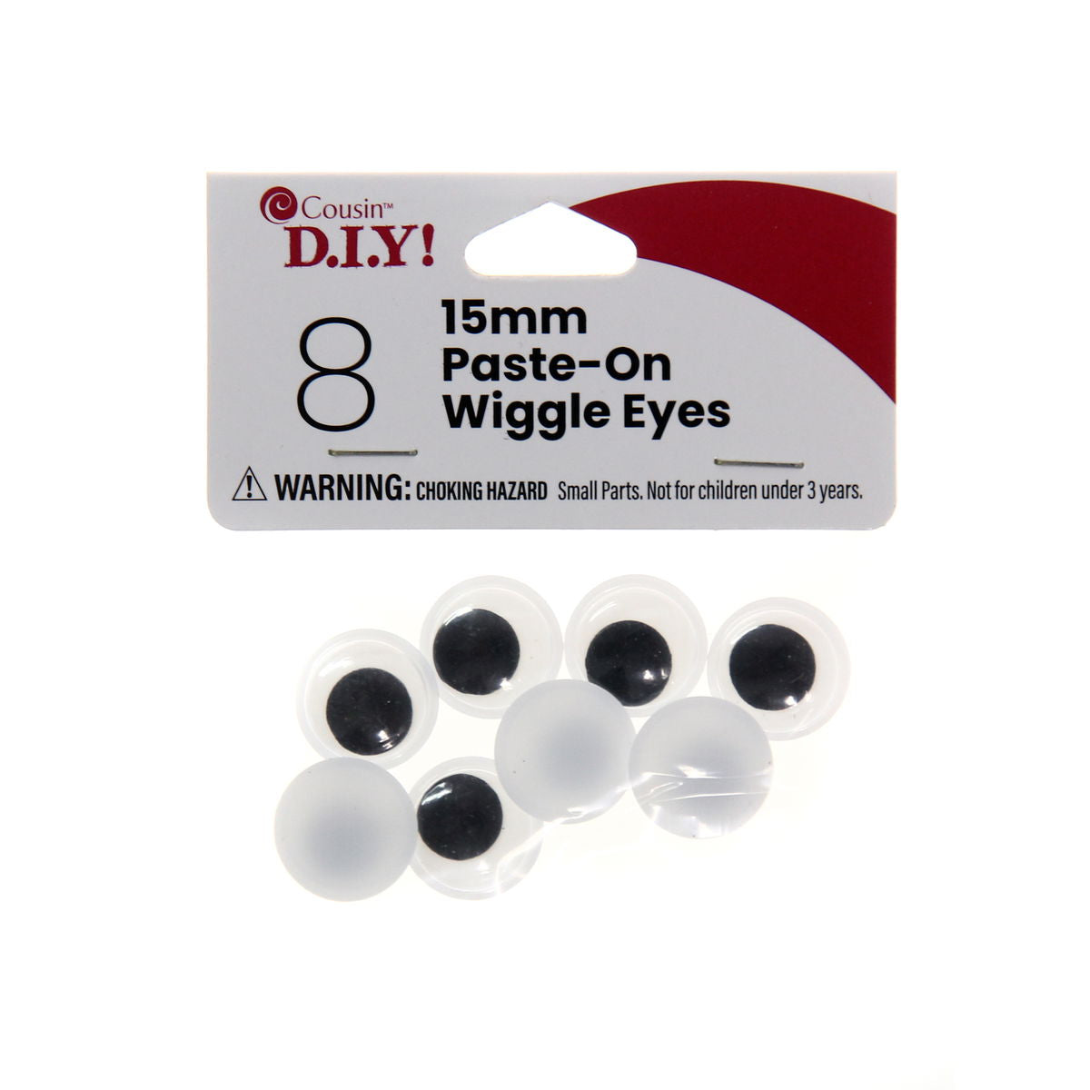 Wiggle eyes transform flat craft projects into characters with personality. Apply them to handmade puppets, classroom decorations, or children's art projects, the floating black pupils create instant animation as they shift behind clear plastic domes. Cousin manufactures these classic craft supplies with secure adhesive backing that bonds to paper, foam, fabric, and wood surfaces without repositioning hassles.