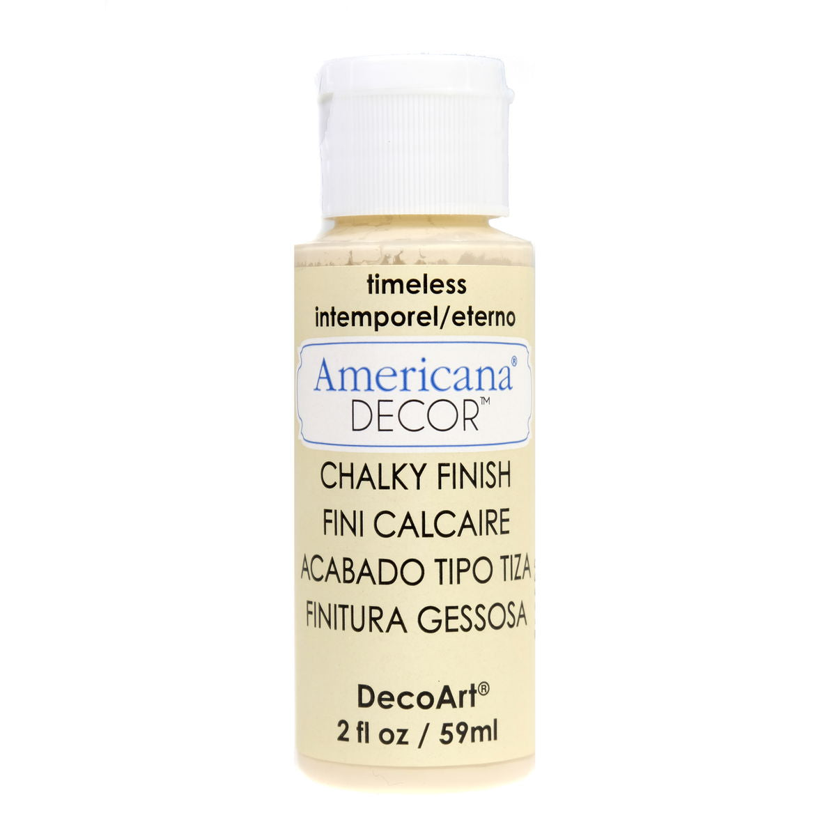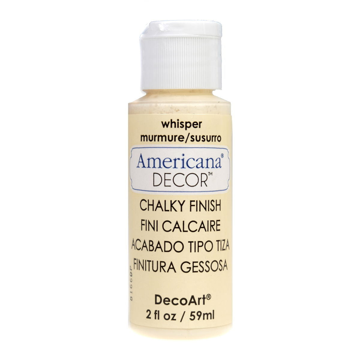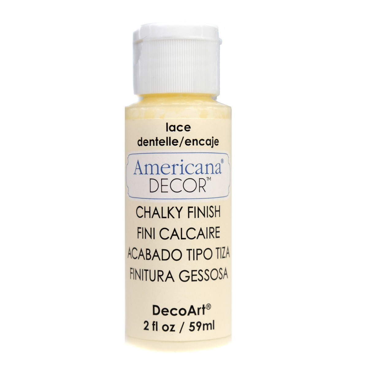 Decor Chalky Finish Paint is a unique chalk, matte-finish paint that creates beautiful, vintage decor pieces without special skills or hours of training. No need to prime, sand, or prepare surfaces. Paint can be buffed to a smooth, shiny finish on its own or by using a Creme Wax. Formulated with advanced adhesion technology, and excellent opaque coverage. The water-based paint can easily be distressed for a vintage look. Will work on wood, walls, canvas, metal, terra cotta, paper, glass, styrofoam, fabric, masonry, and ceramics.