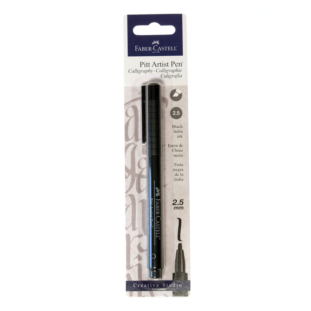These calligraphy pens feature durable, 2.5 mm chisel nibs, great for invitations, journals, scrapbooking, and other paper crafts. The India ink in Pitt Calligraphy Pens is permanent, fade-resistant, waterproof, and acid-free.