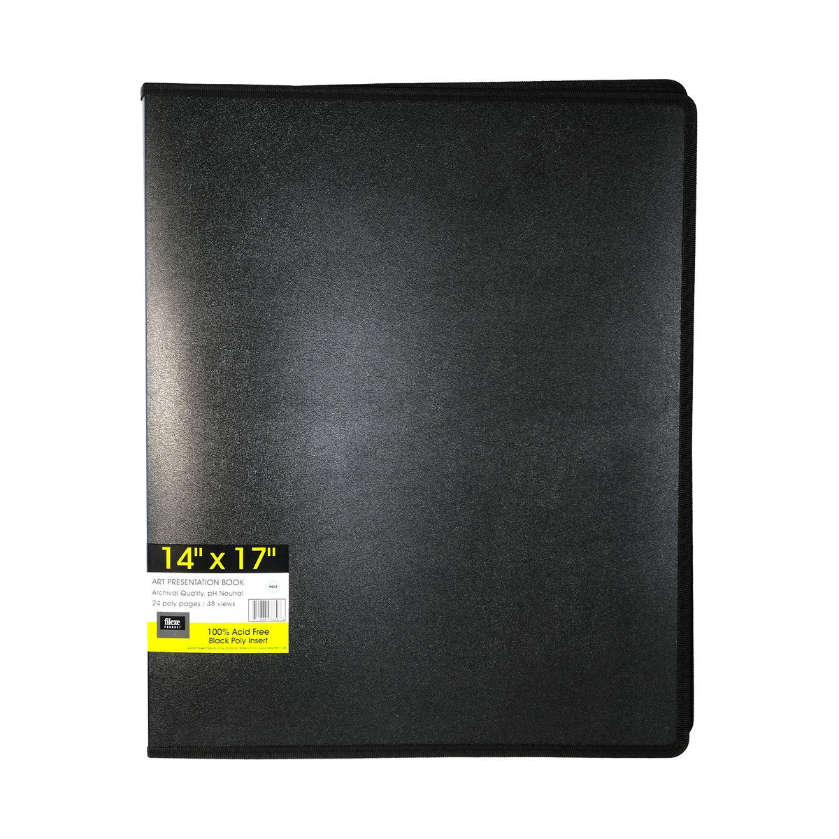 Protect your artwork, photos, designs, prints, and more with a Filexec Art Presentation Book. Its unique features include a soft nylon binding and additional protection with a water and stain-resistant poly cover. Inside are 24 poly sleeve pages, each lined with a black insert sheet that protects contents from fading and ink from transferring. These 100% acid-free, archival quality, pH neutral binders are also great for school and professional use.