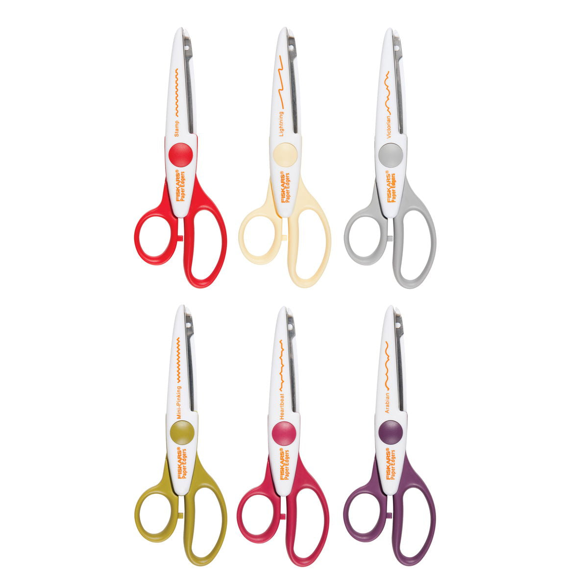 These classic edgers are used for making decorative borders on any paper crafting project. The Contemporary Set contains victorian, mini-pinking, heartbeat, Arabian, stamp, and lightning.