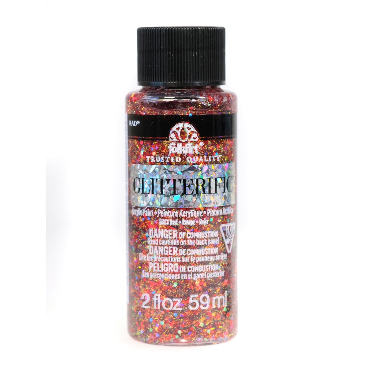 Glitterific Paint uses multiple sized glitter particles suspended in a crystal clear base to create the most dazzling glitter paint. Use on wood, metal, glass, canvas, paper, decorative fabrics, and rigid plastic. The paint is Waterbased with an Ultra High-Gloss finish.