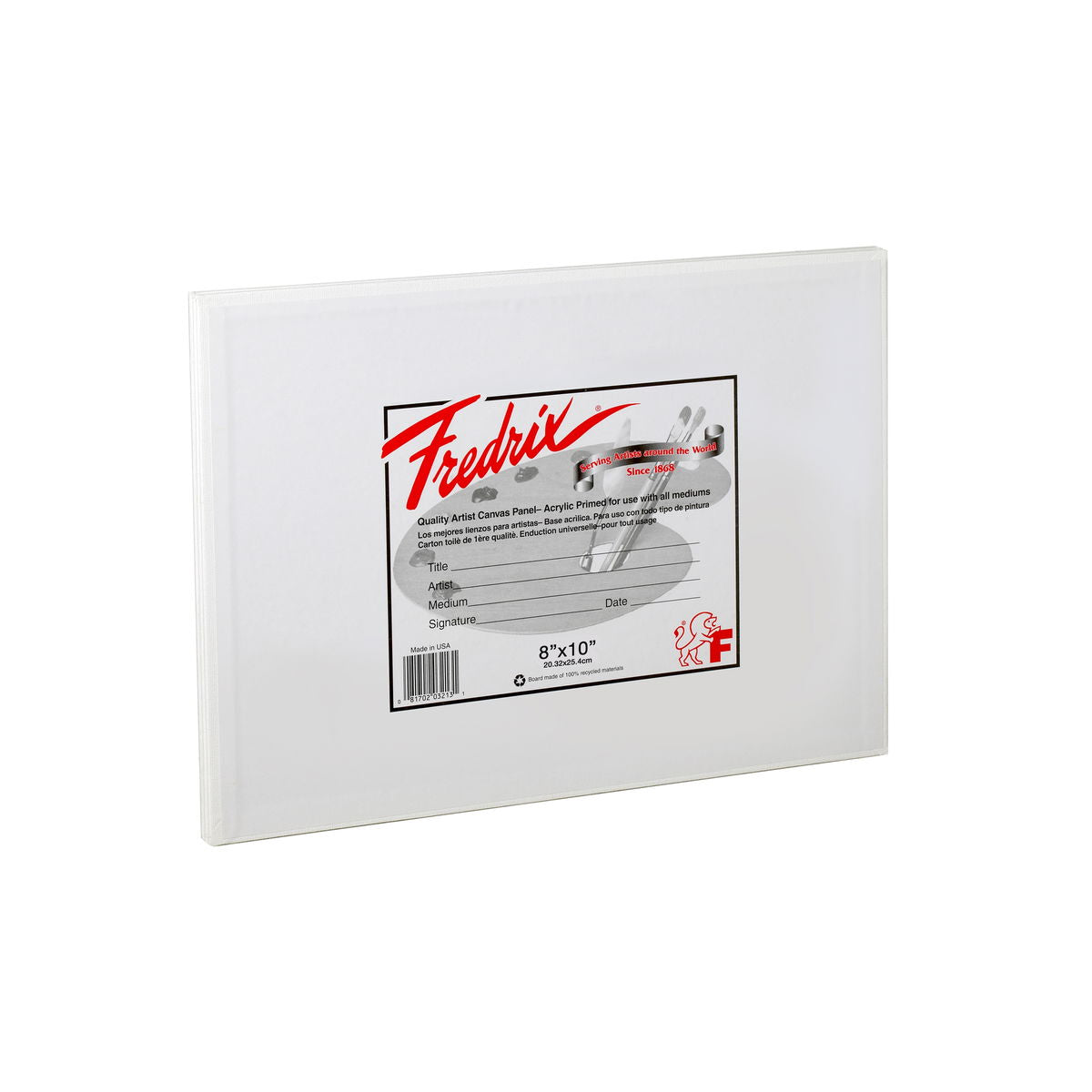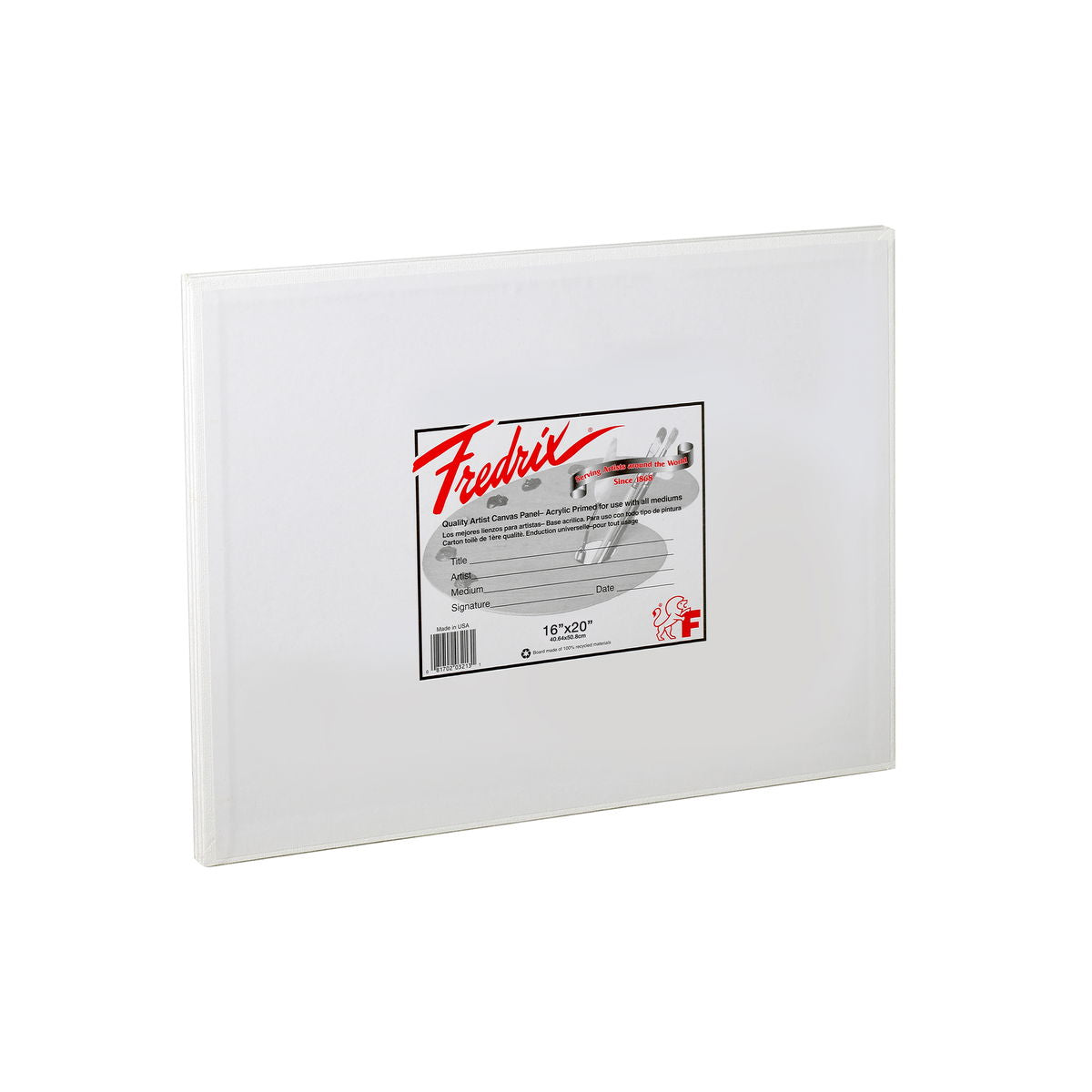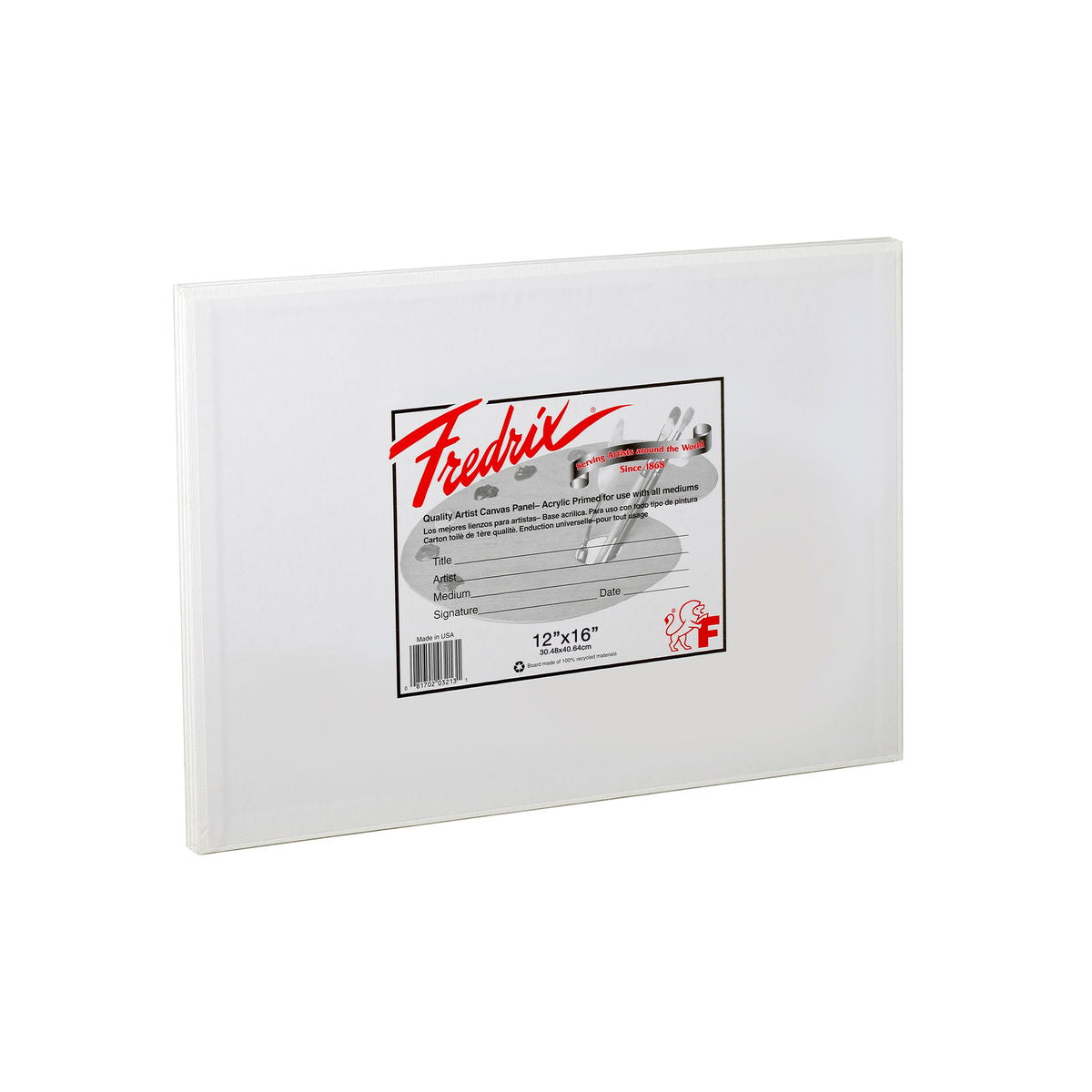 These acid-free, acrylic titanium primed canvas boards provide an economical alternative to traditional stretched canvas. All panels are completely turned and glued onto a heavy board to ensure durability. Frederix Canvas Boards are more portable than traditional stretched canvas, making them a great solution for students and artists on the move. Suitable for oil or acrylic painting, mixed media applications, and more. Canvas boards are available individually and in packs.