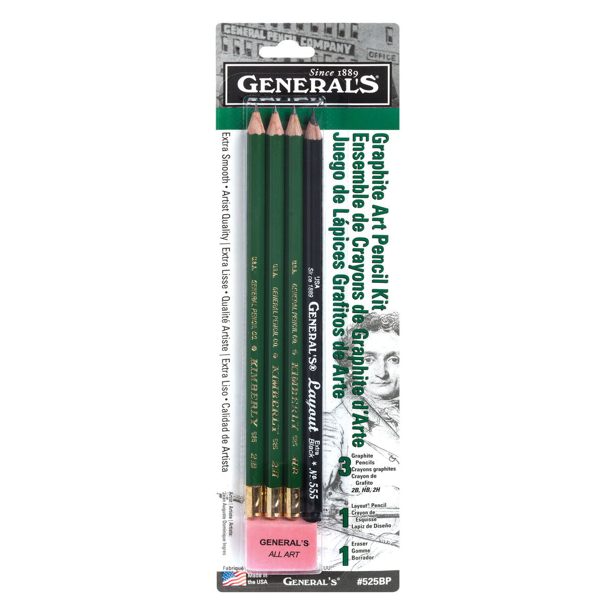 Use this kit for laying out a watercolor painting, sketching designs for projects, journal writing, or for fine art drawing. Kit contains three graphite drawing pencils (2B, HB, 2H), a layout ebony pencil, and an eraser.