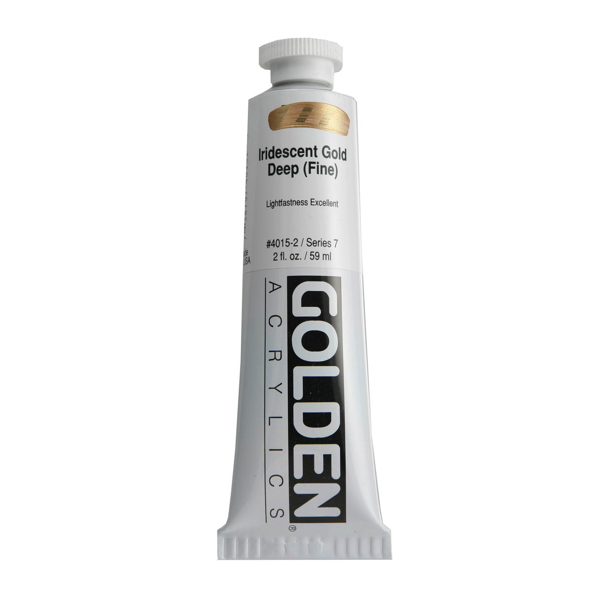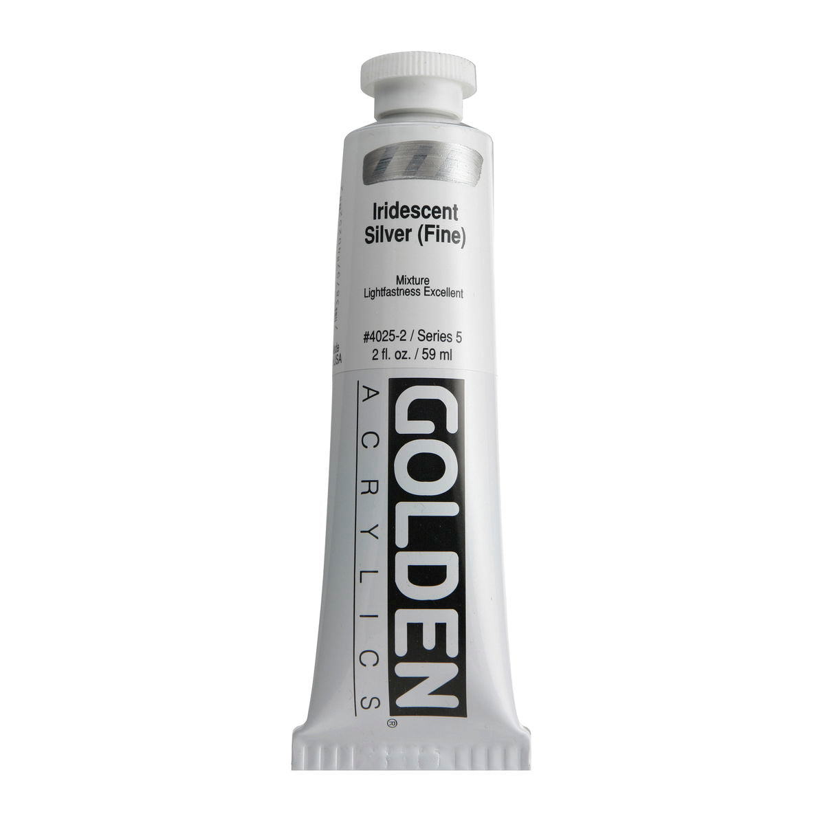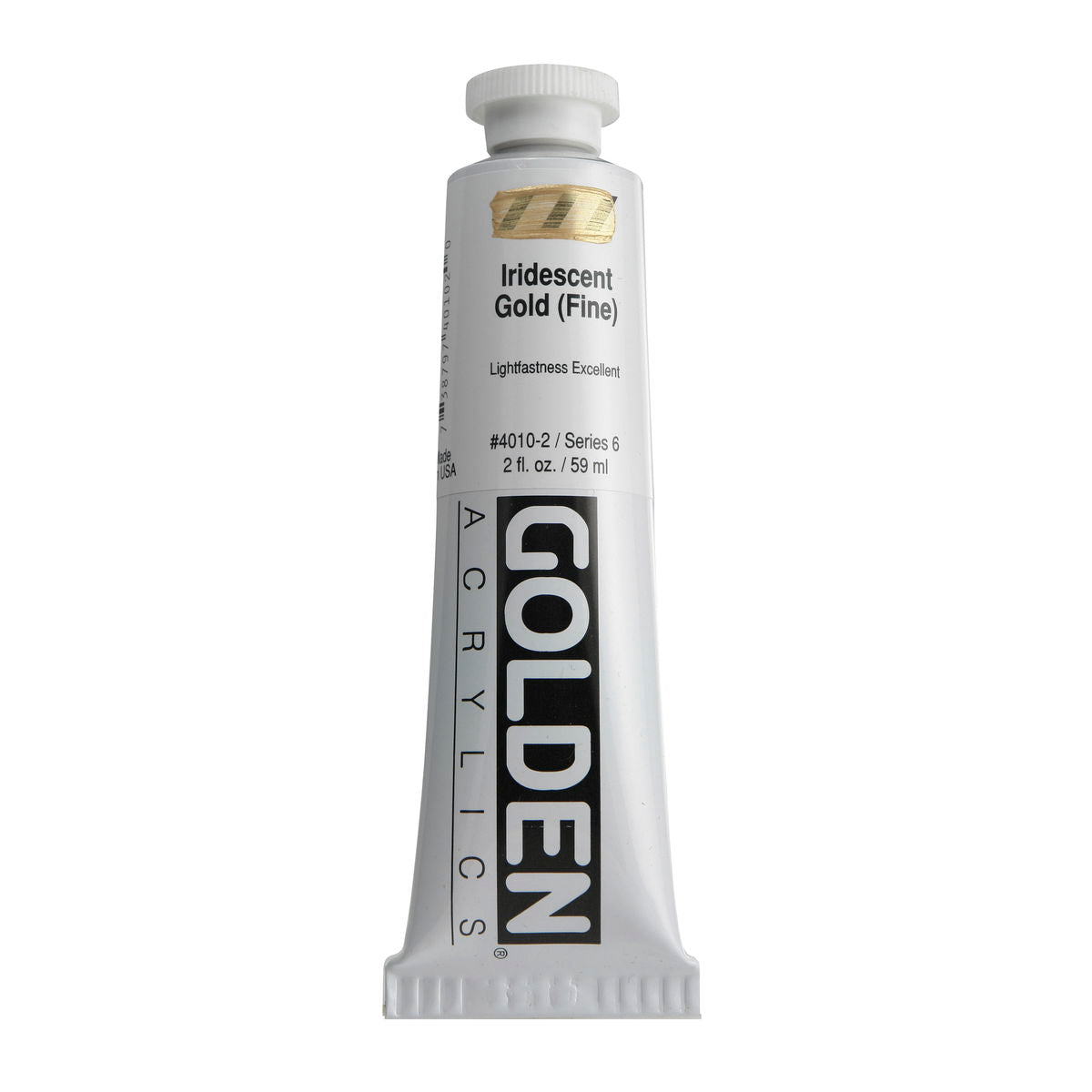 Golden Iridescent Acrylics may be used alone or with other colors, gels and mediums. Iridescent Pearl is extremely useful for mixing with other colors for pearl-like qualities. The Iridescent colors are very resistant to fading and will not oxidize or tarnish. Most Iridescent Acrylics are available in fine and coarse. Coarse Iridescents offer a range of highly reflective pigments including stainless steel and gold mica flakes. Fine Iridescent Colors offer a smooth velvety finish and blend well with other colors. Golden Interference Acrylic Colors offer a unique "interference flip" when viewed from different perspectives. Interference Colors flip between a bright opalescent color and its opalescent complement. When applied over white or lighter surfaces, the Interference Color is less obvious and the "flip" effect is more obvious. When applied over black or darker surfaces, the Interference Color is more obvious and the "flip" effect is less obvious. Adding a very small amount of black to Interference Colors produces deeper opalescent effects. Combine Interference Colors with Golden Gels (Gloss) and Golden Fluid Acrylic colors to produce an endless variety of colors and effects. Most Interference Colors are available in fine or coarse. These Golden Heavy Body Acrylics are produced with 100% Acrylic Polymer Emulsion. This produces a film with excellent flexibility, and chemical, water and UV resistance. The milky emulsion dries transparent, allowing the pigments to show their full color. Pigments are chosen for the greatest purity and permanency within each chemical class.