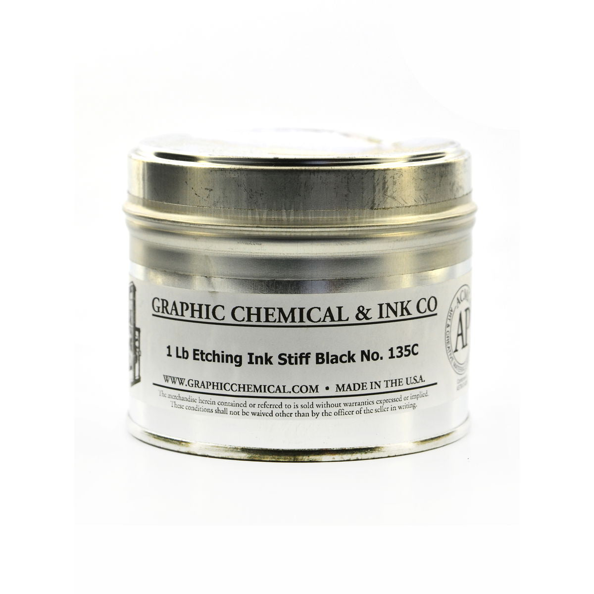 Graphic inks are suitable for all etching and other intaglio techniques. They are available in quarter pound tubes (in colors) and one pound slip top metal cans (in black and blue black). Containers are filled by weight, not volume, and contain no added extenders.