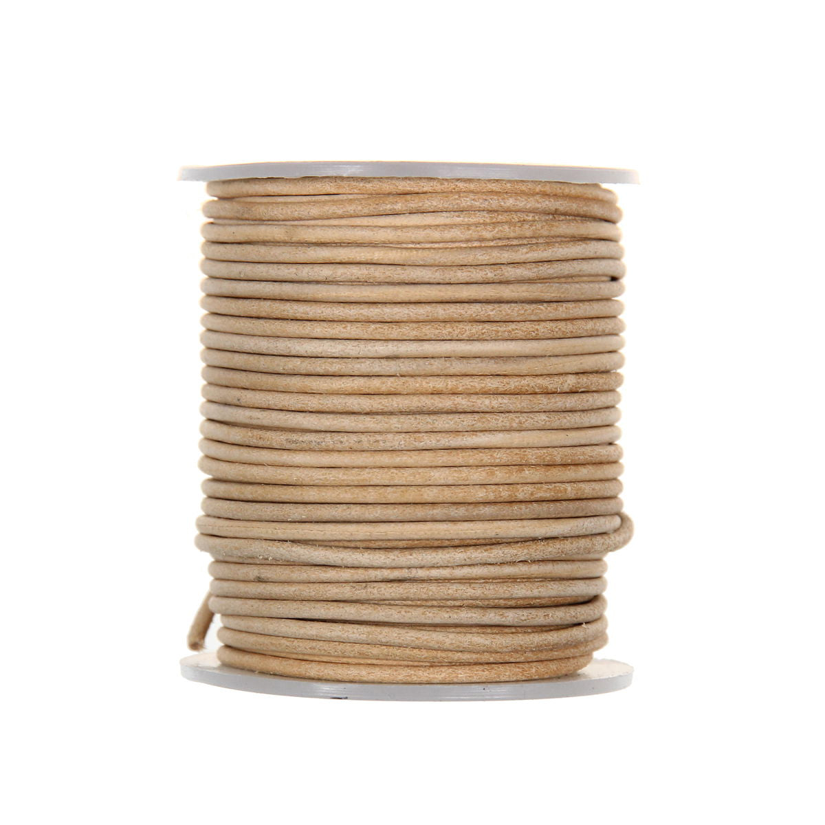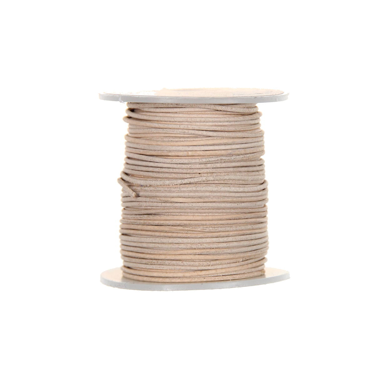 Genuine round leather cord, great for jewelry making, leather crafts and mixed media projects! Create attractive leather bracelets, necklaces, earrings and more by adding beads, charms and other embellishments. This cord is also perfect for braiding and trimming clothing and hatbands. Available in black, brown and natural spools in 1 mm and 2 mm thicknesses.