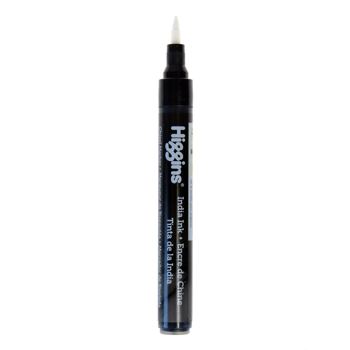 Quality Higgins Ink in a convenient Ink Pump Marker. Easy to use, and less messy. Use India Ink for a variety of techniques including scratchboard, technical drawing, lettering, fabric dyeing, crafts and more. The Black Magic is an Intense black formula for use on polyester drafting film, paper, vellum, prepared acetate, and automatic drafting machines. Reproduces with even line tone and contrast. Won't peel, chip or crack. The barrel features a transparent window to monitor the remaining ink level. The nibs are removable and the barrel may be refilled with Higgins ink. To prime the marker, shake well, then remove and flip the cap. The top of the cap features a built-in ink well to protect the nib. Insert the nib and pump the tip to activate the ink flow. Available with 1 mm, brush tip, and chisel tip nibs.
