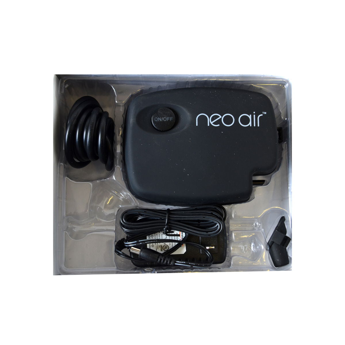 Fast, portable, 3-speed air compressor. The Iwata Neo Air Mini Compresssor works with most gravity-feed airbrushes. Includes on/off and 3-speed control button, airbrush holder, air hose, and 100V-240V power supply. Specifications: Air flow - .37 CFM@open flow (10.5LPM), PSI - 1-15 psi max, weight - .95 lbs, size - 5.1 in. x 3.9 in. x 2.5 in. Great for makeup, hobbies, and cake decorationg