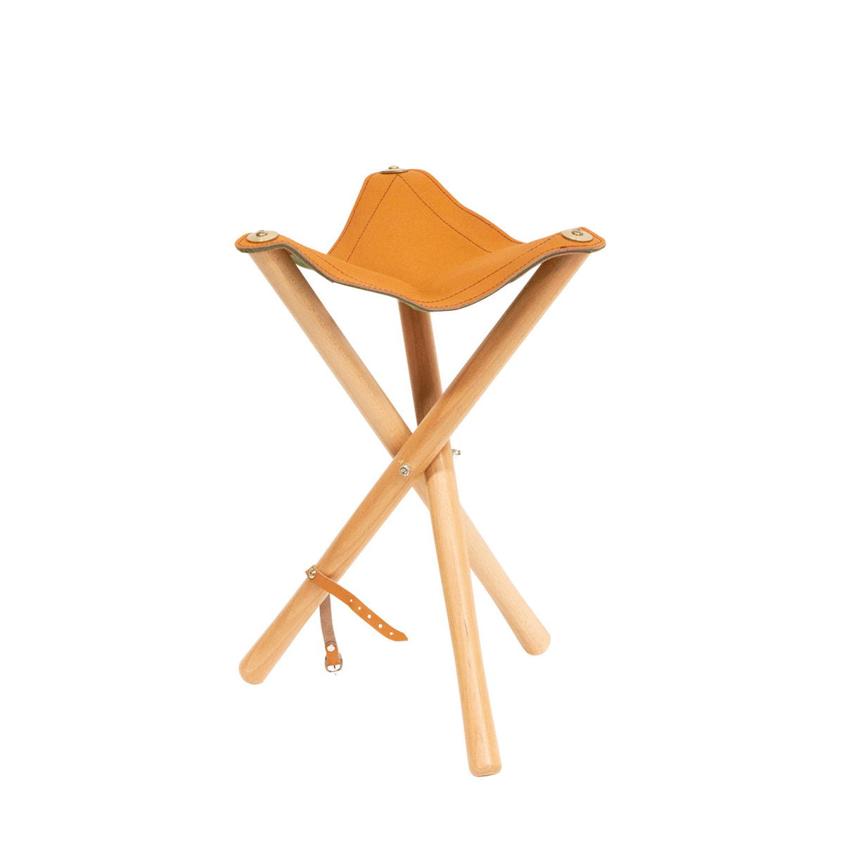 Use this heavy-duty hardwood folding stool in the studio or in the field. The thick, soft leather seat makes it comfortable. The tripod legs open and close easily, and when folded, it s nicely compact for storage and transport. Seat measures 14 1/2 in. The stool stands 18 in. high. This stool supports up to 200 lbs.