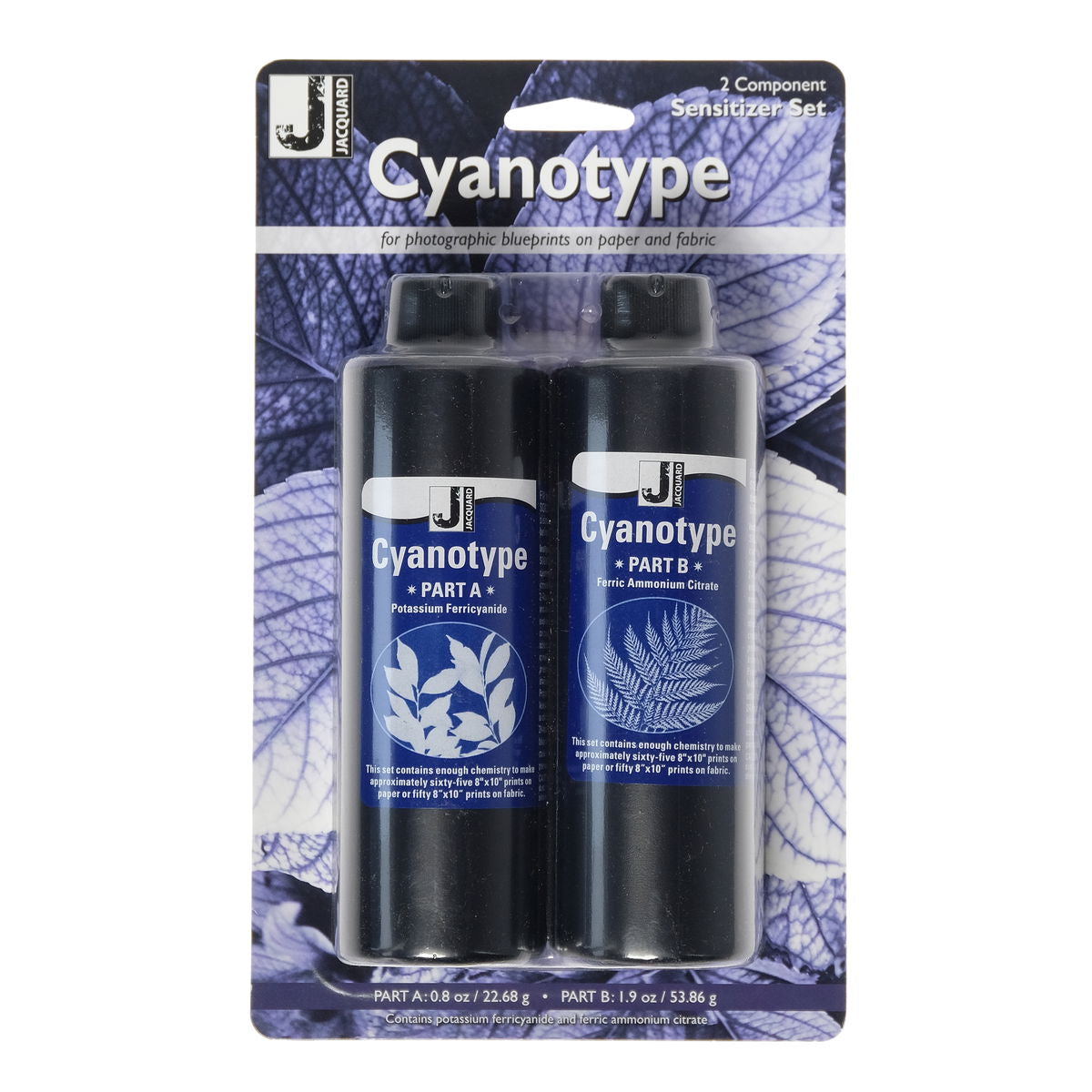 Harness the power of the sun for a classic method of printing with Jaquacard s Cyanotype Set. The cyanotype printing process, discovered in 1842, produces distinctive monochromatic prints in a rich Prussian blue tint. Simply expose any object that casts a shadow onto the sensitized surface and expose to sunlight or UV light to create a stunningly unique print. You can also use the Cyanotype set with digitally printed photographic negatives on a transparency to produce highly detailed, full-resolution images. Jacquard Cyanotype sets are great for photographers, mixed media artists, printmakers, and quilters, and makes for a fun and safe project for kids.