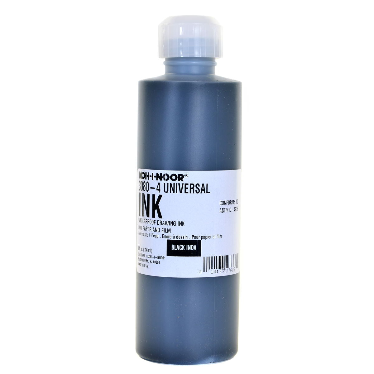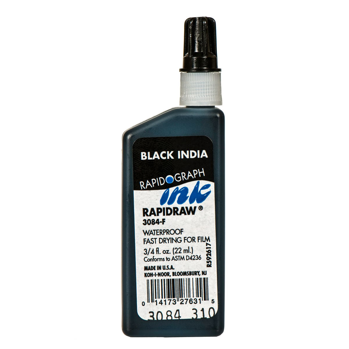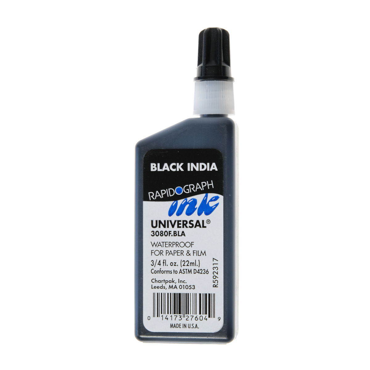 Universal Drawing inks are suitable for a variety of applications including use in technical pens and refillable plotting points. White and black are opaque, other colors are transparent. For use on paper and film. Waterproof. #3080-F. Rapidraw is a fast drying waterproof ink for film. Erasable on film, short open pen time. Good ink for experienced technical pen users. #3084-F. Ultradraw ink is for use on paper and features slow drying ink for long open pen time. Good for beginning technical pen users. #3085. All inks 3/4 oz. with easy fill spouts.