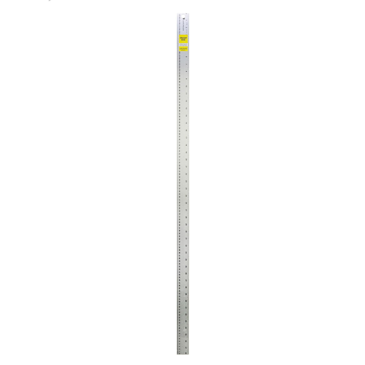 Straight edge and rule combined to give you an edge always ready to use. Large, easy to read numbers and calibrations. Lightweight and non-rusting. Calibrated to 32nds through the first 6" on every item. Edge-to-edge calibrations for easy length-of-item measurements. English and Metric calibrations on each ruler. These straight edges are 1.75" wide, 1.6 mm thick.