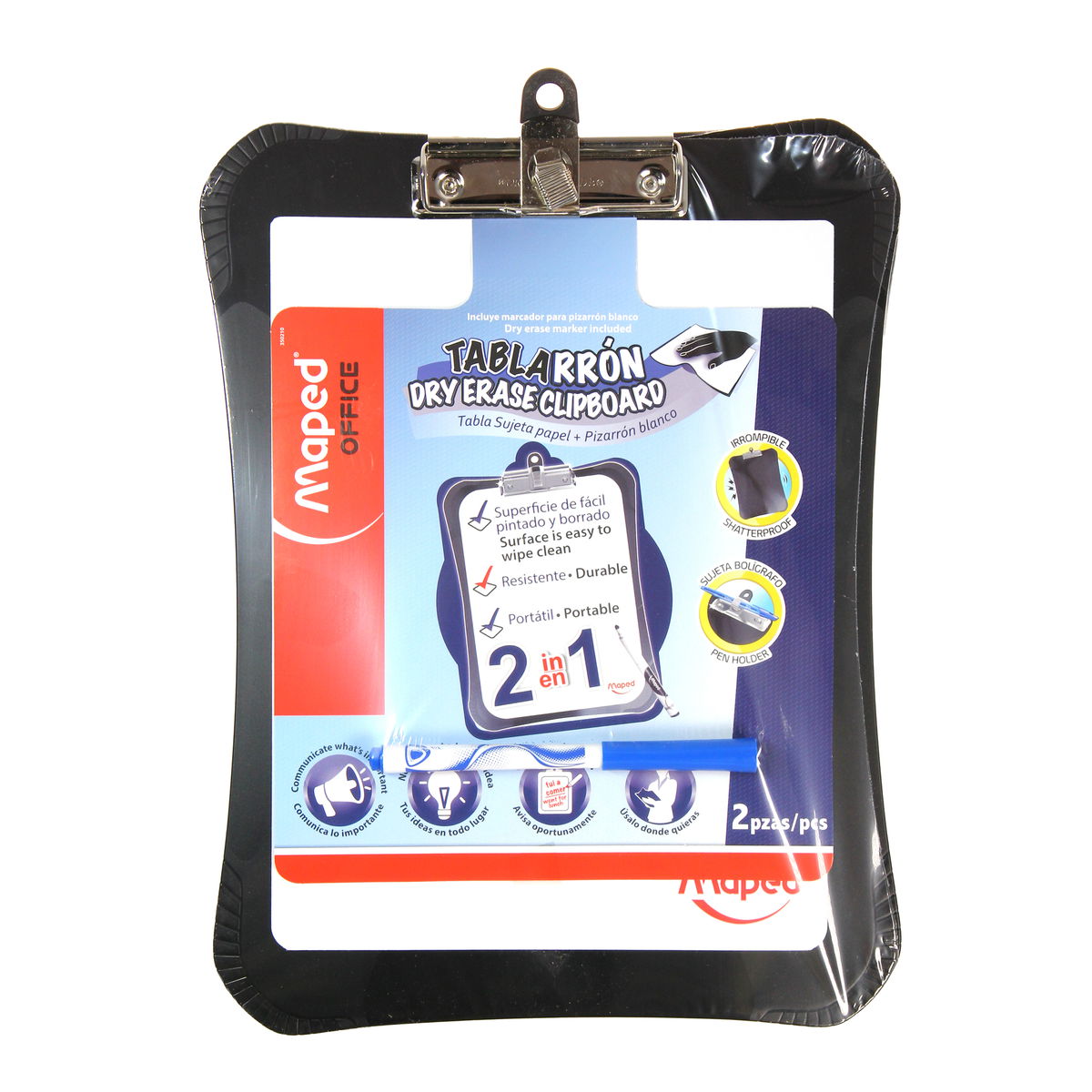 The Dry Erase Clipboard features a built-in dry erase surface perfect for quick notes, diagrams, and game day sport lineups. Hold up to 200 sheets of standard paper with the Jumbo Clip. A dry erase marker is included. The surface is easy to clean with a rag or paper towel.