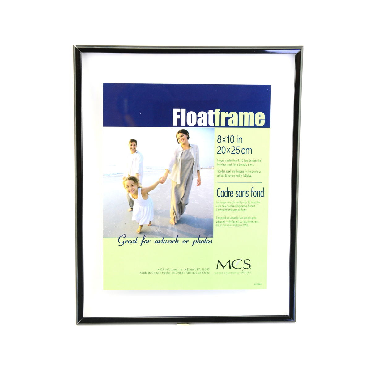 Two clear acrylic sheets sandwich your work, suspending it in space without touching the edges. This creates the floating effect that gives these frames their name, your image appears to hover within the frame, visible from both sides with no backing to interrupt the view. The minimal profile measures just 1/4 inch wide by 3/16 inch high, keeping attention on your work rather than the frame itself.
