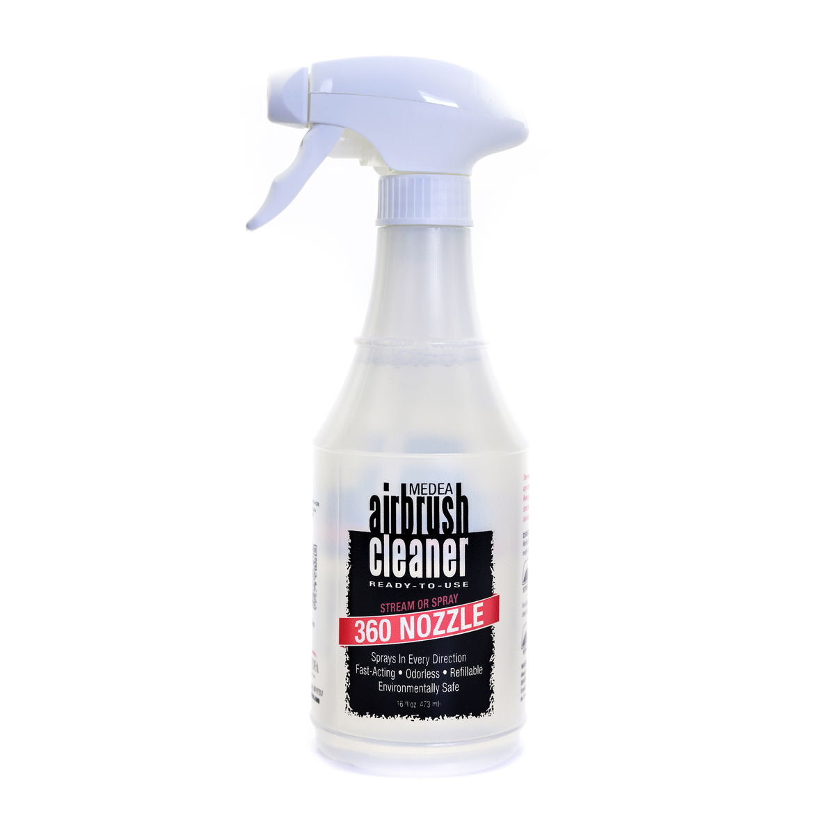 Spray cleaner from any angle to flush airbrush parts and studio surfaces