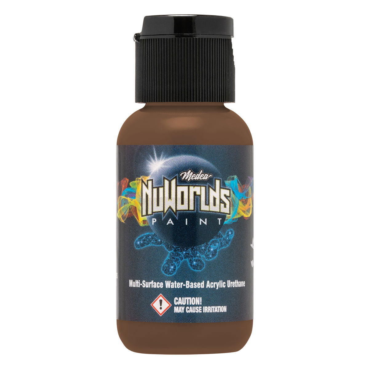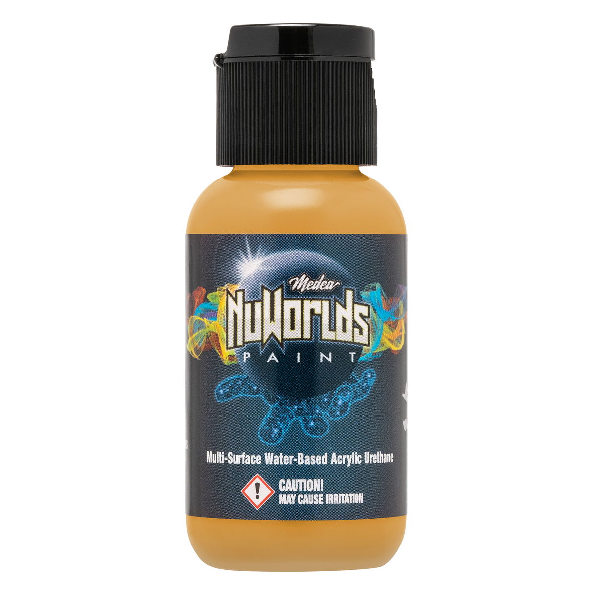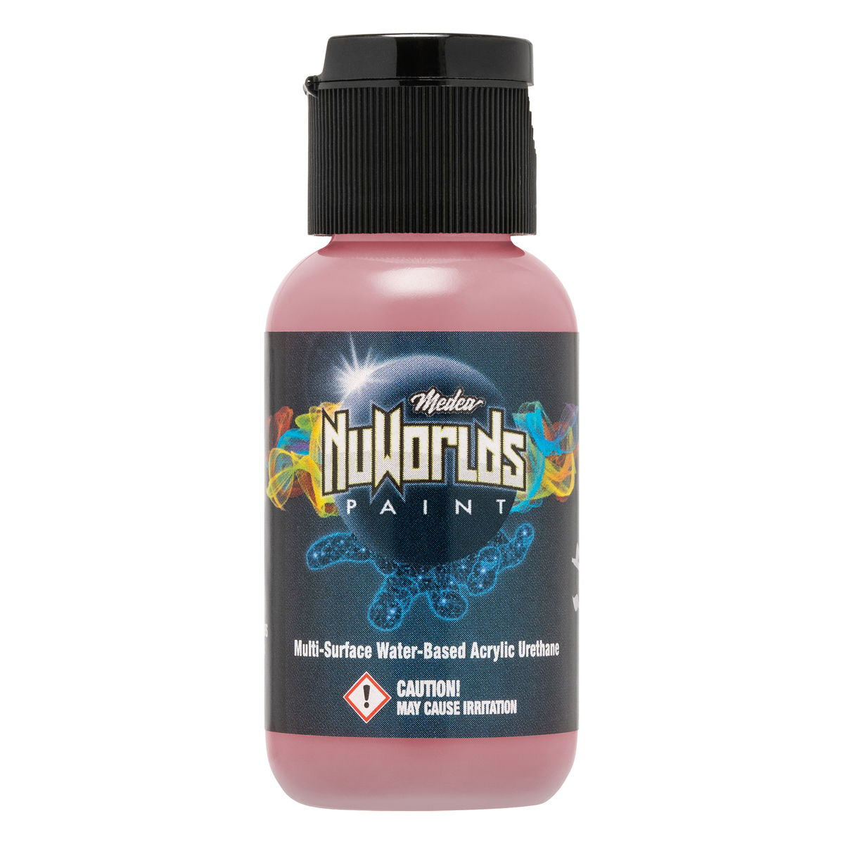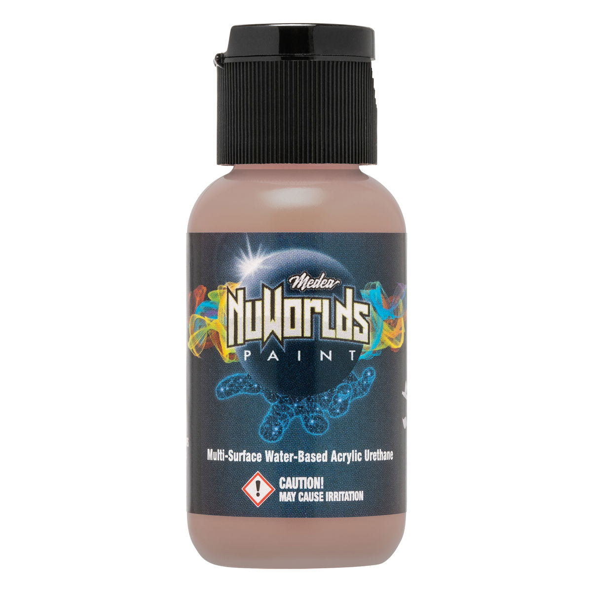 A true multi-surface paint for airbrush or hand brushing applications! The Medea NuWorlds Paints allows you to mix any color with a single Wash Medium for endless shade options. No primer is needed. Their chemically balanced formula has superior adhesion and unrivaled durability. This multi-surface paint is perfect for gaming, scale modeling, plastic figure painting, fishing lures and more. Nuworlds Paints are available in 13 opaque colors, 16 transparent colors, 13 transparent fleshtone colors and 2 true metallic metal colors. The Wash Medium and paint are in 1 oz. bottles