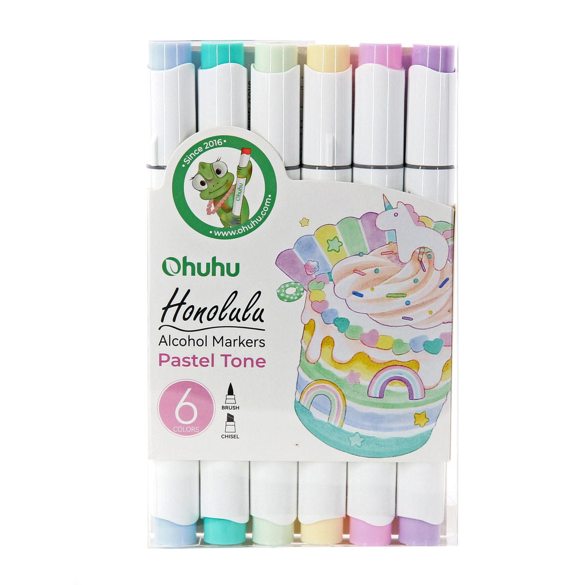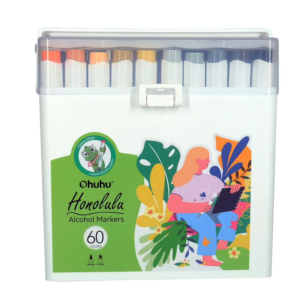 Introducing the Ohuhu Honolulu Marker series! With an ergonomic design and ultra-blendable high-grade alcohol-based dye inks, these markers deliver superior performance. The ultimate flexible brush tip makes them indisoensible for design, illustration and fine art. Details: Ink Type: Alcohol-Based Dye Ink Ink Volume: 4.4 ML Tip Style: Brush & Chisel Dual-Tip Tip Material: Nylon Line Size: 1-6 MM Easy Blending and Smudge-Free Color Coded Caps Fast Drying