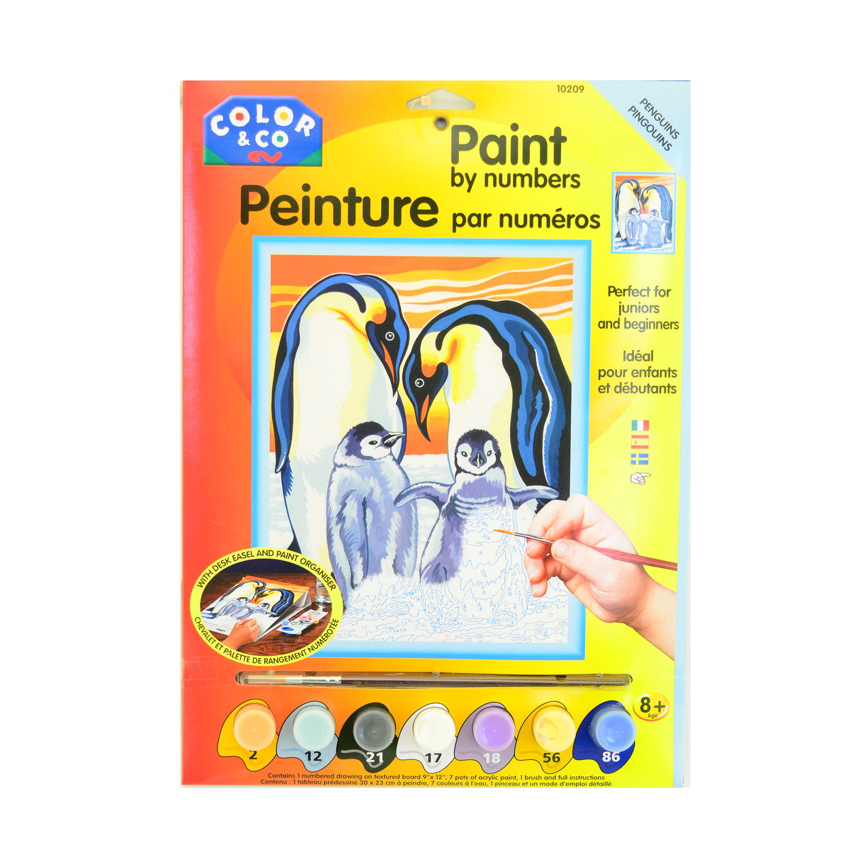 Color & Co. Paint By Numbers Sets provide a great way for young artists to start painting. Each board has been pre-printed, so all you have to do is read the instructions and you can paint right away! Coral Reef and Penguin Paint By Number Sets each contain one numbered drawing on 9 in. x 12 in. textured board, seven pots of acrylic paint, one brush, and instructions.