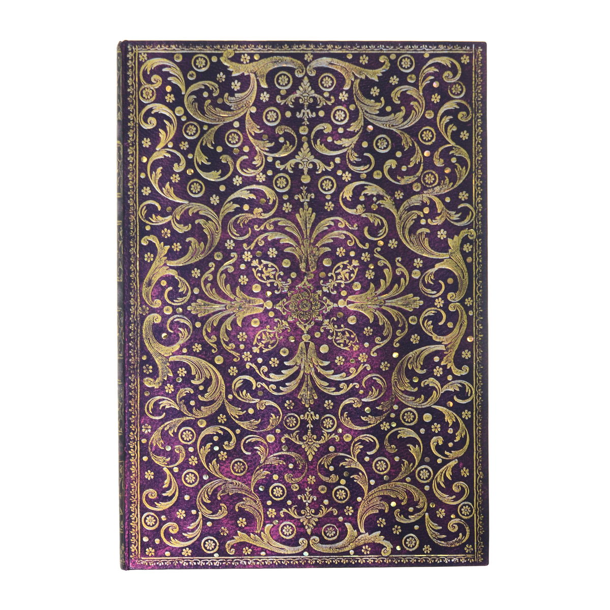 Aurelia journals are fit for a king. The inspiration for this cover dates back to Paris in the mid-18th century, and the original binding housed copies of King Louis XV s procedures for Holy Week. French nobility were not noted for their restraint in the use of gold embellishment, and this cover is no exception. Originally crafted by Pierre-Paul Dubuisson, this design is a marvellous riot of goldtooled rococo elements, featuring birds, flowers and leaves. Dubuisson was himself bookbinding royalty of a sort. He and his father specialised in almanacs decorated with gold plates, and Dubuisson became the King s official bookbinder in 1758. This cover is an ode to the glory of gold, the colour of the sun and the precious metal against which all others are measured.