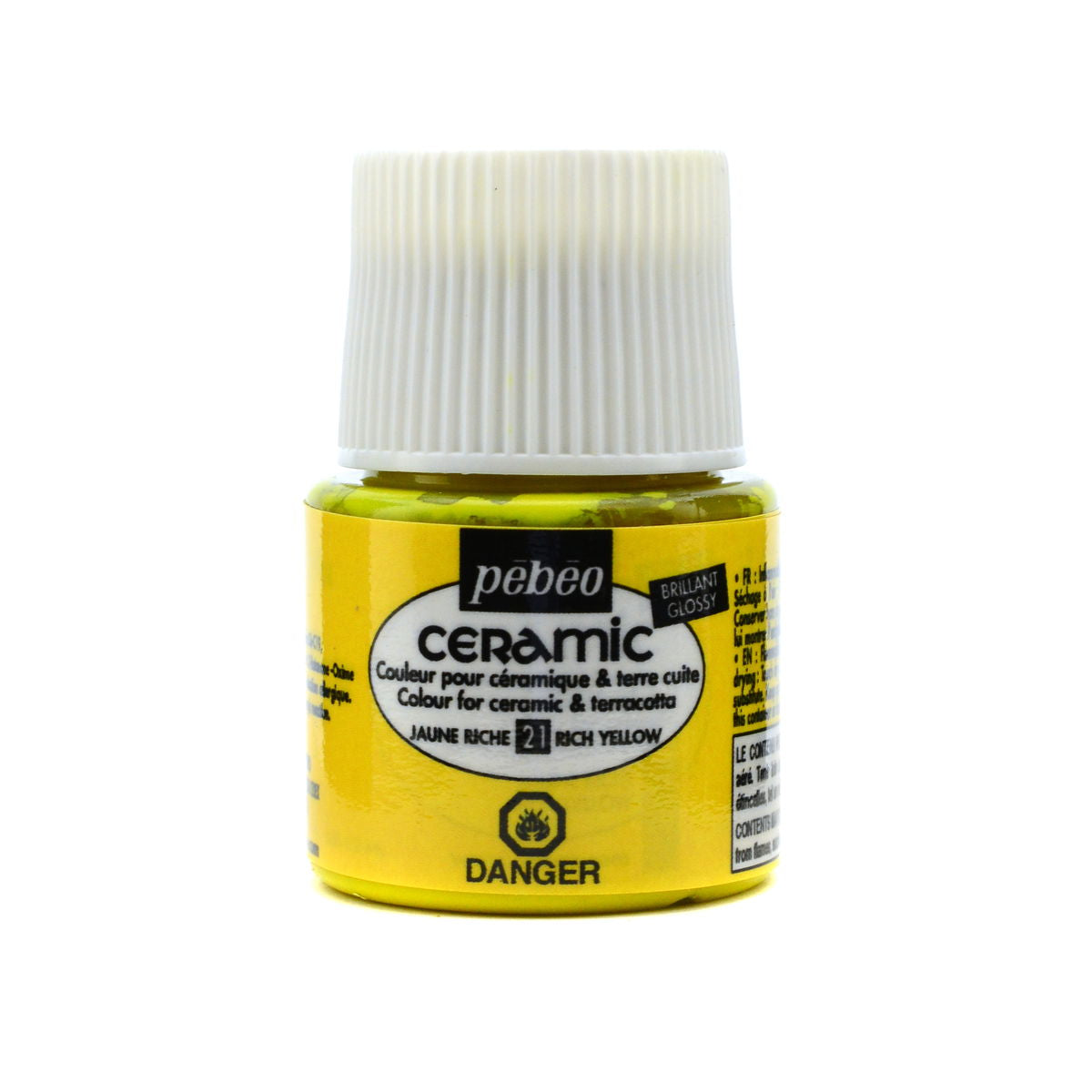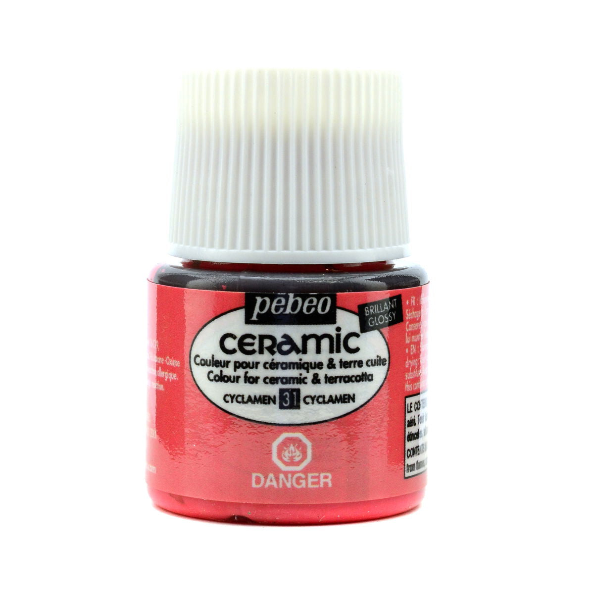 These ceramic paints are solvent-based, air-dry colors for terracotta, ceramic, earthenware, stoneware, and more. These strong, opaque paints are designed to retain their brilliance and gloss for years of decorative use. Should only be used for decorative purposes. These paints are not food safe. Available in 45 ml bottles.