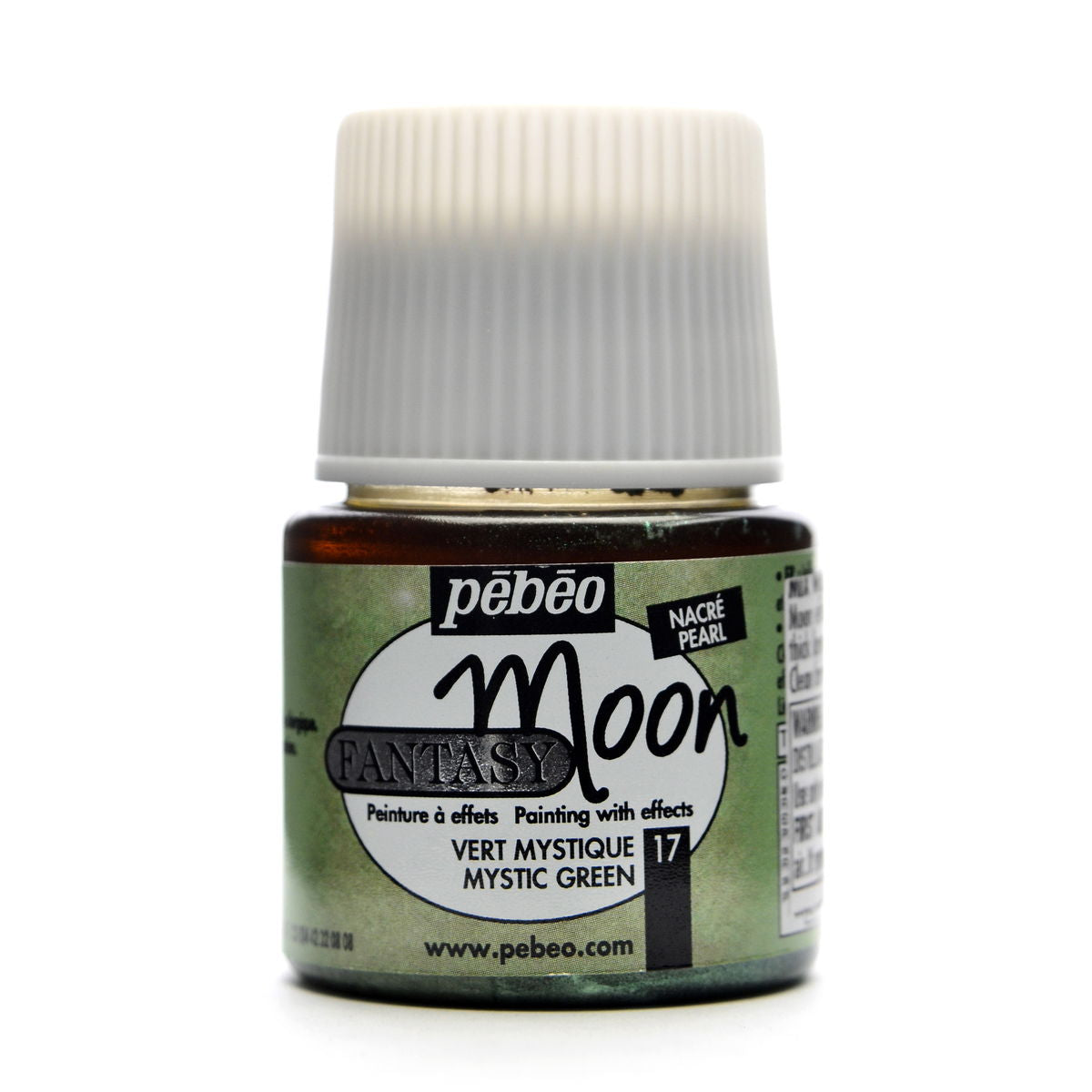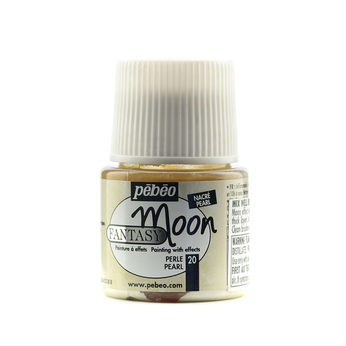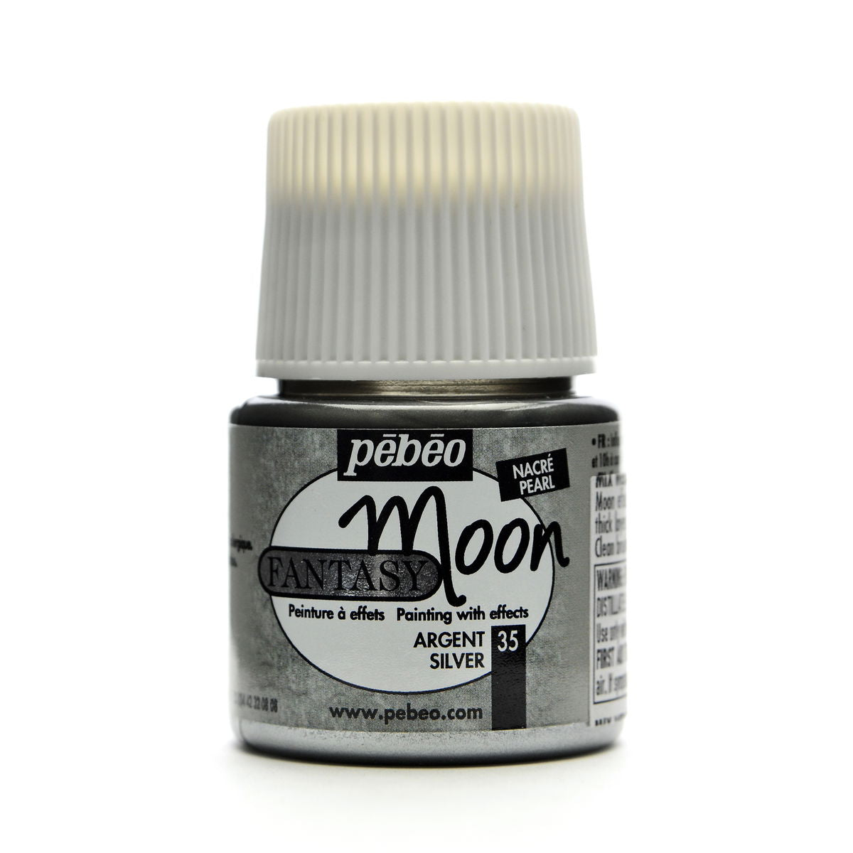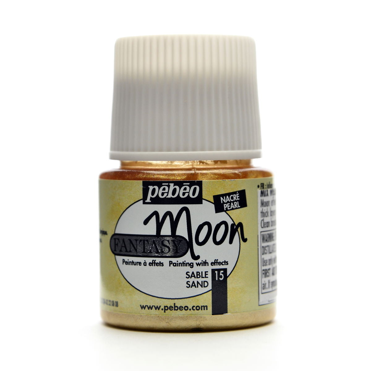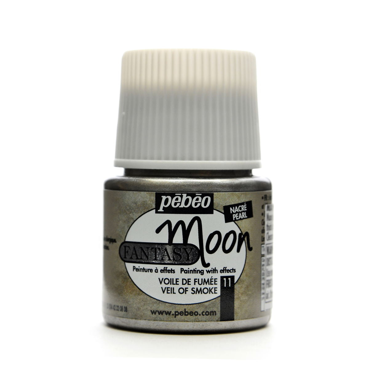 Pebeo Fantasy Moon Colours feature an amazing hammered finish when dry. Opalescent and pearlescent, Moon Colours give jewelry and crafts a precious stone quality finish. They are easy to use, and are effective on a variety of surfaces, including metal, porcelain, terracotta, acetate, ceramic, canvas, mirror, glass and more! Mixing Fantasy Moon Colours with Vitrail or Ceramic paints will result in beautiful marbled combinations of color, opacity, and texture. Available in 45-milliliter bottles.