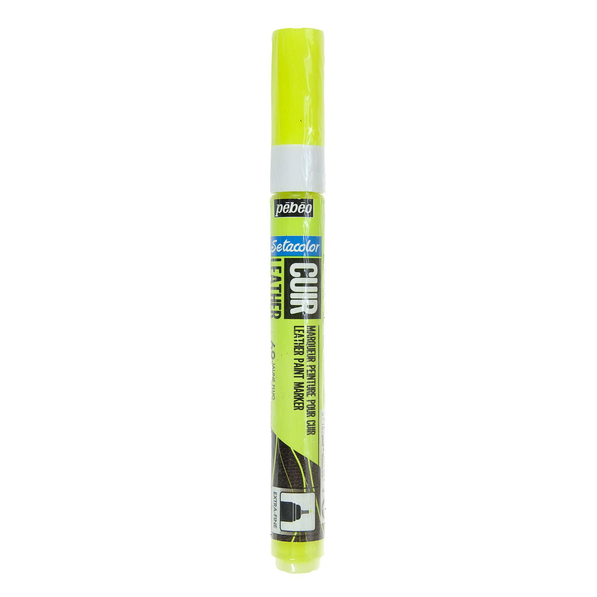 P b o is breaking new ground in this technique by offering a range of 10 colours of markers especially designed for leather and synthetic leather. With an extra fine tip, you can easily work on customising leather and leatherette surfaces even when you are new to the activity. This marker is great for drawing, writing and working on details or flat areas (without streaks), to be used alone or in combination with the Setacolor Leather colours. The shades are identical to those in the 45 ml bottle. For fluorescent shades, it is best to apply to light-coloured surfaces. It is essential to shake the marker well before use. The tip is primed very quickly, so don t press too hard or for too long, since the colour may leak out of the tip. Put the cap back on the marker after use to prevent the tip from drying out. Store flat. Replacement marker tips also available in a pack of 3.