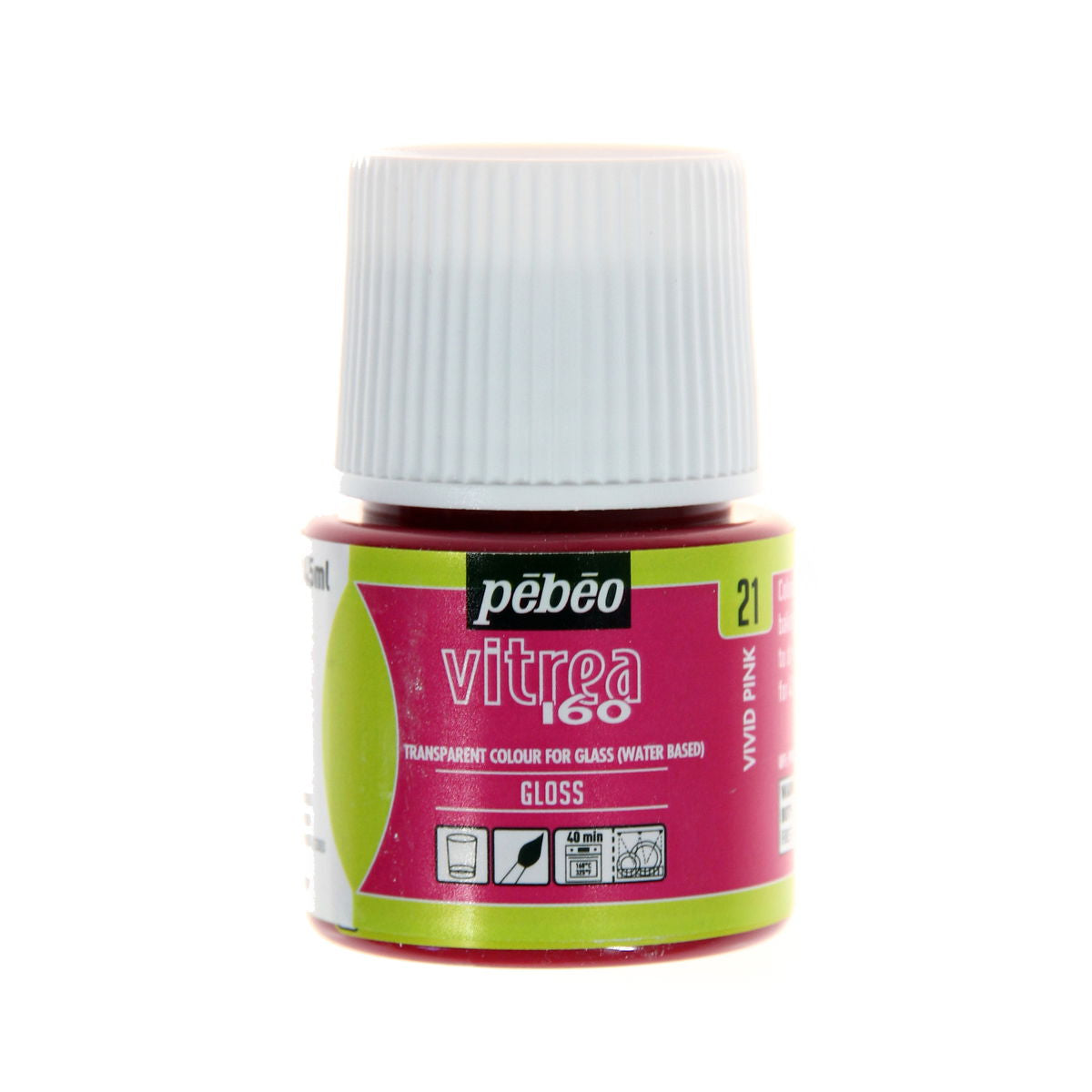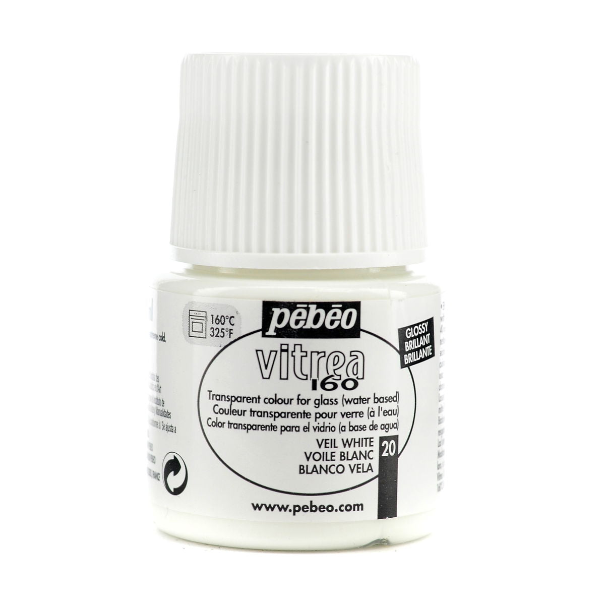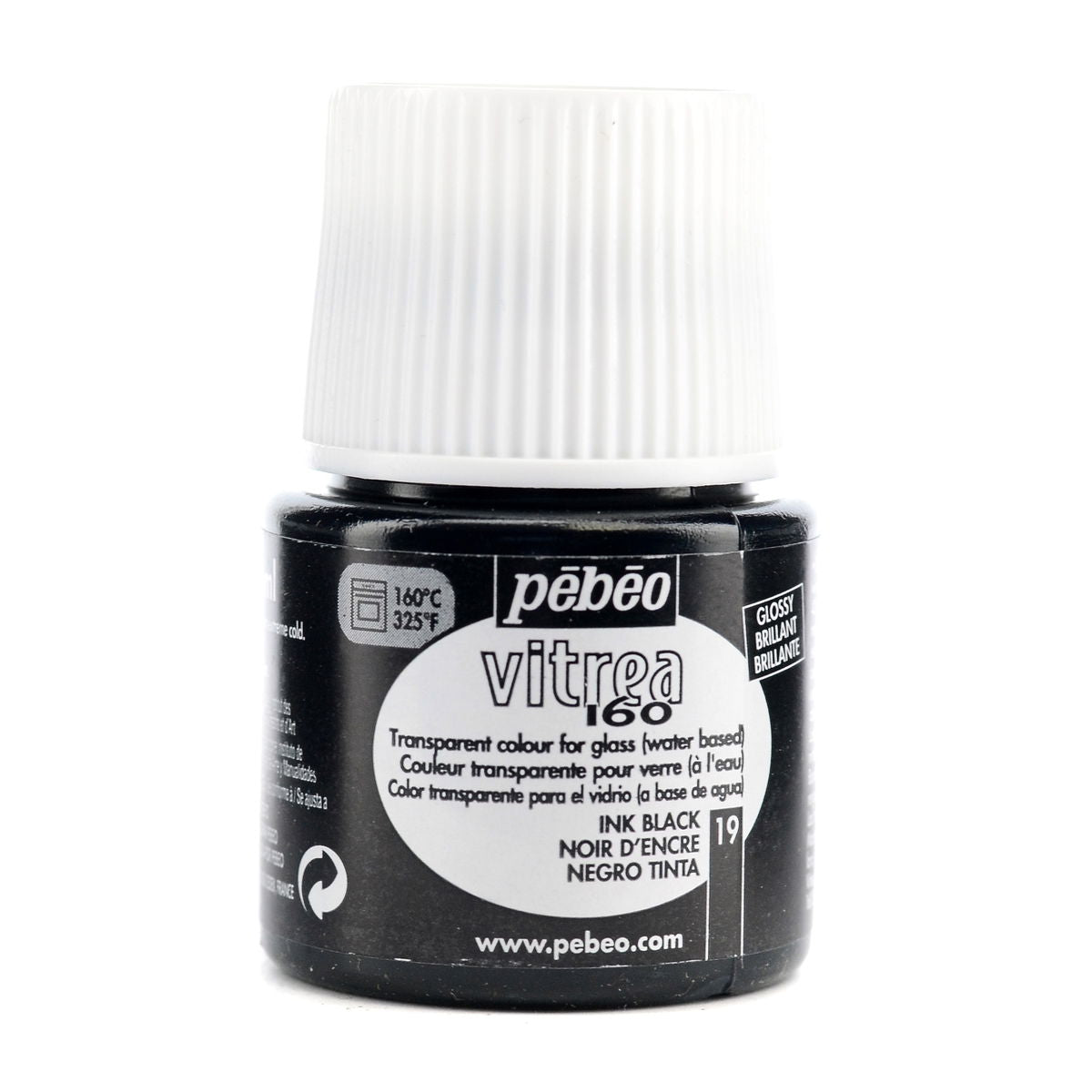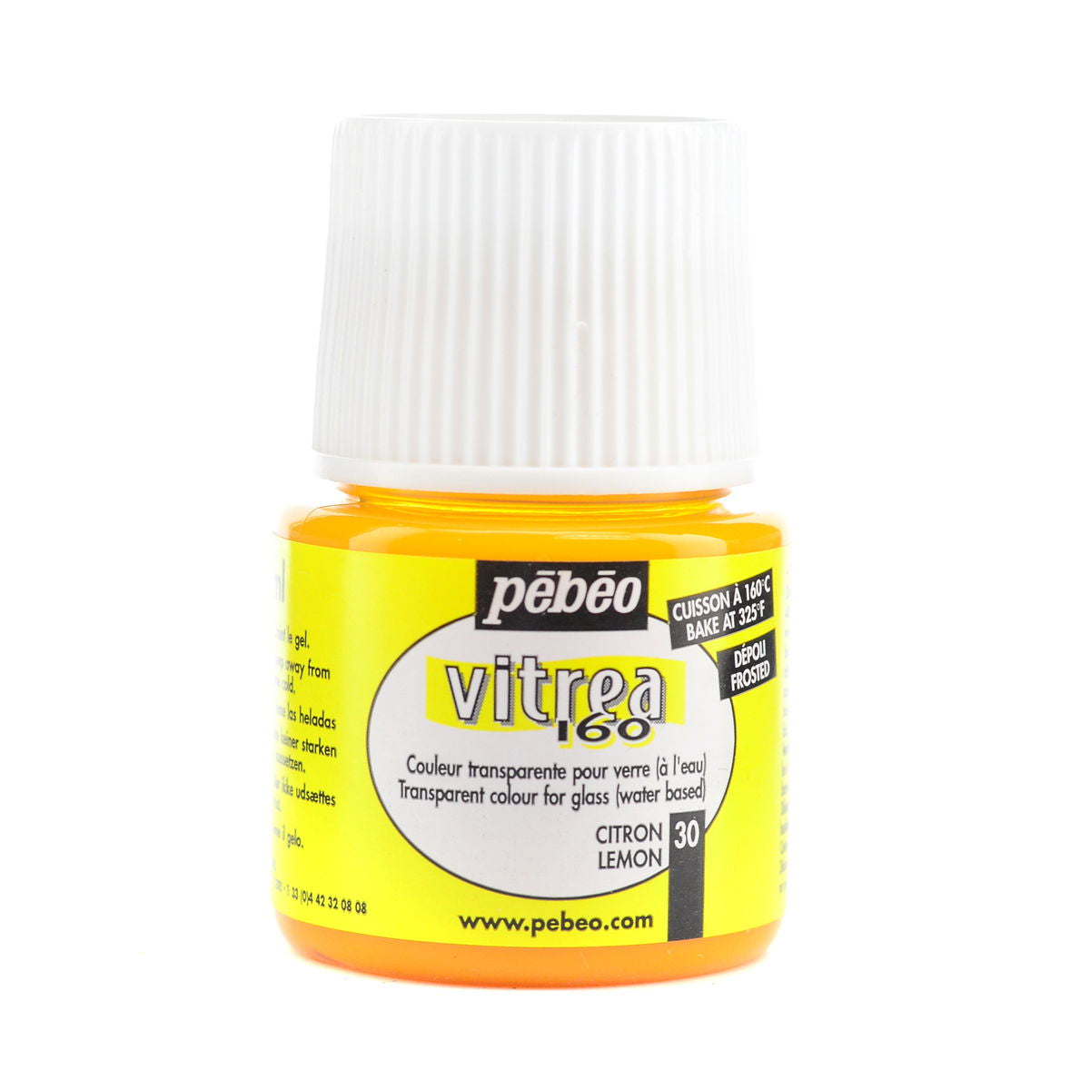 Pebeo Vitrea 160 colors are transparent, water-based paints for use on glass. Use Vitrea 160 glossy or frosted colors to create vivid artwork that gathers gorgeous light. Vitrea 160 colors become dishwasher-safe after baking. Available in 1.5-ounce (45 ml) bottles.