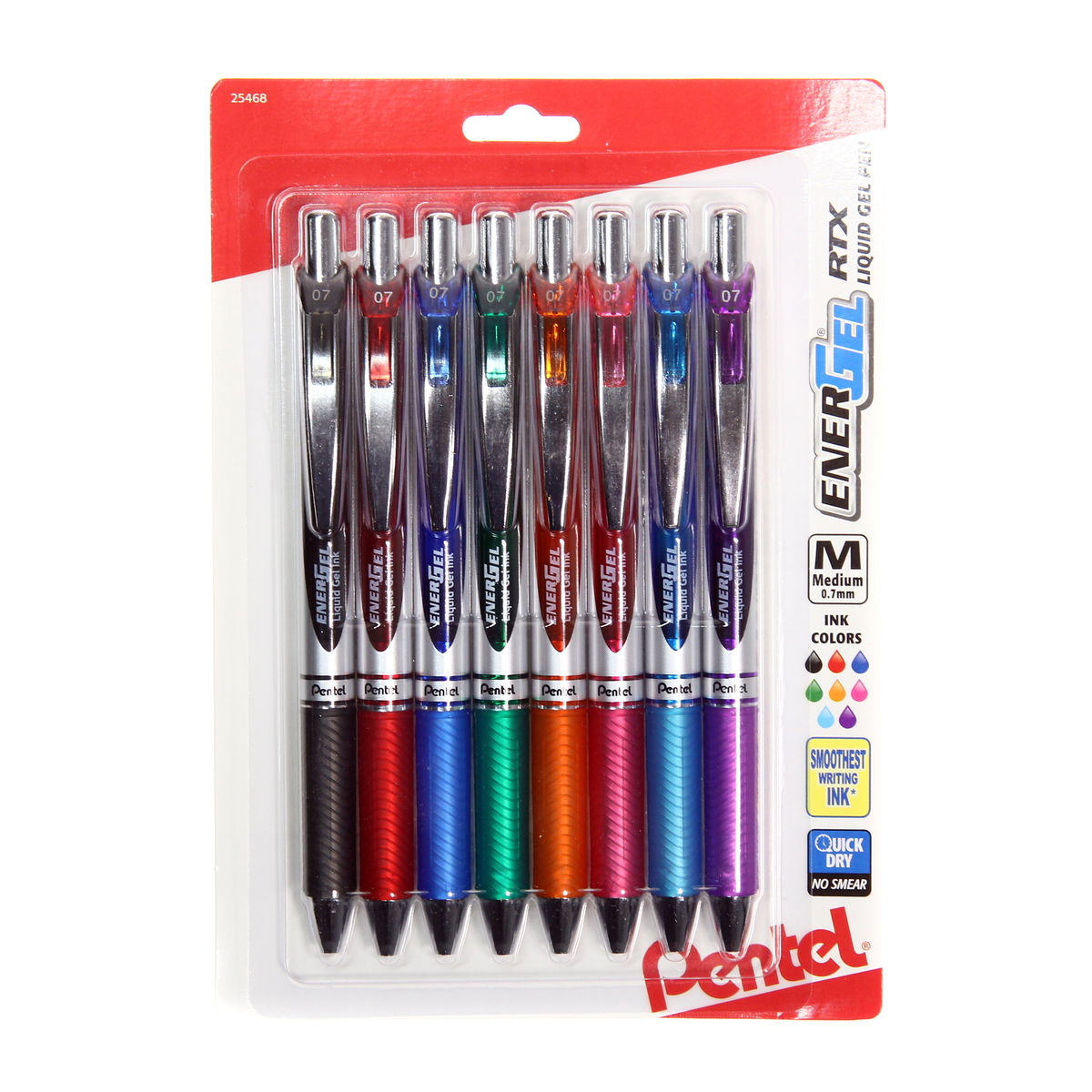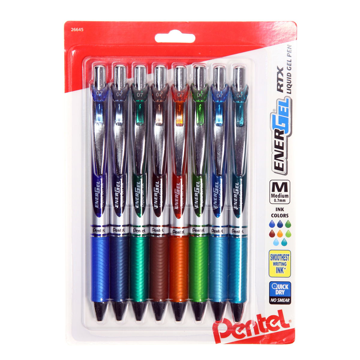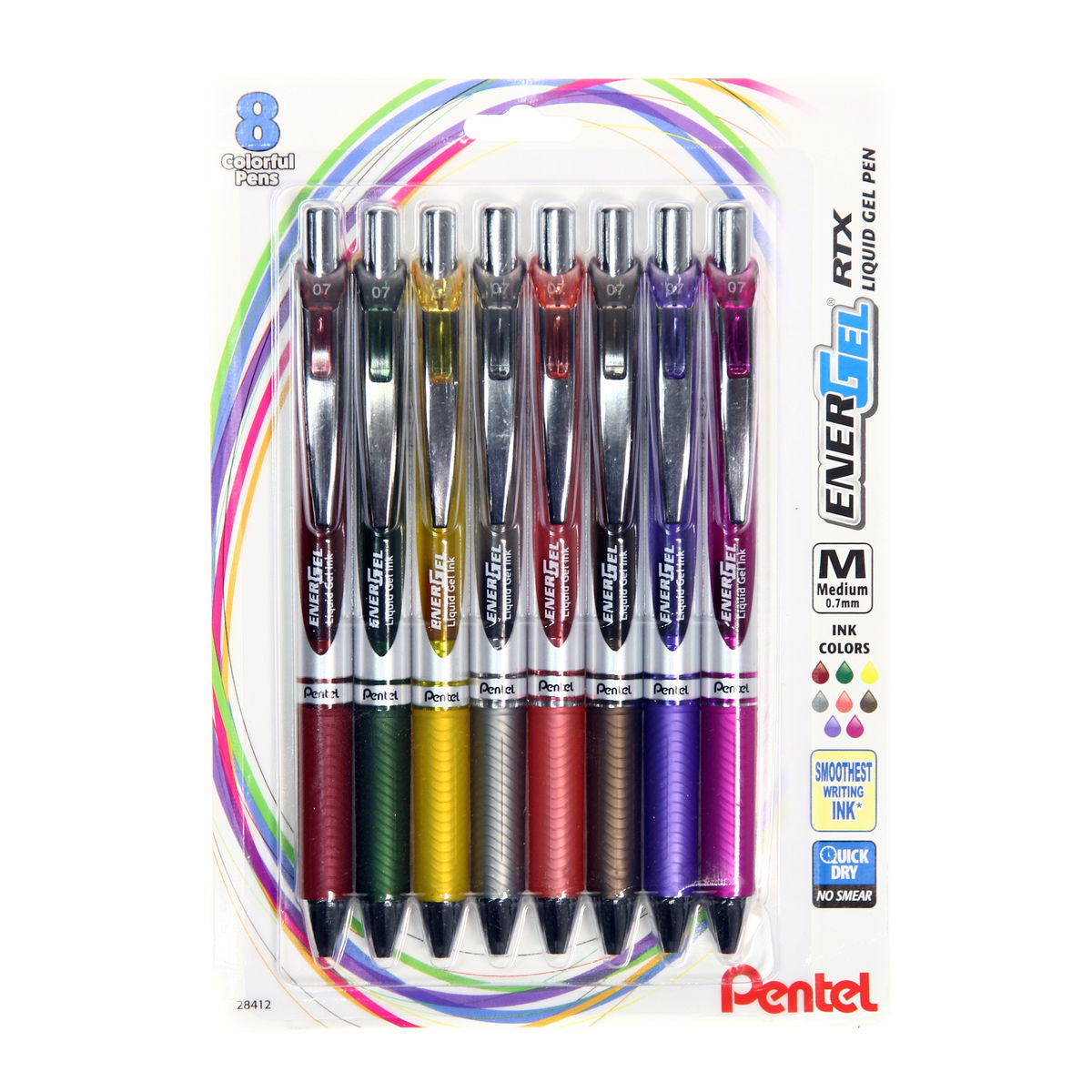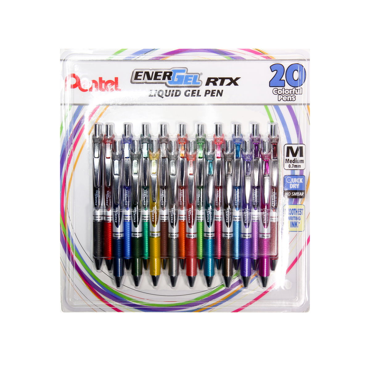 The EnerGel RTX gel pen offers a luxury feel and a smooth, effortless writing experience. Featuring a combination of rollerball and gel inks, it is fast-drying, smooth, and perfect for left-handed writers. The compact retractable design and latex-free silicone grip. Assorted v1 set: black, red, blue, green, orange, pink, sky blue, and violet. Assorted v2 set: blue, navy blue, green, brown, orange, lime green, sky blue, and turquoise. Assorted v3 set: burgundy, forest green, yellow, gray, coral pink, sepia, lilac, and magenta.