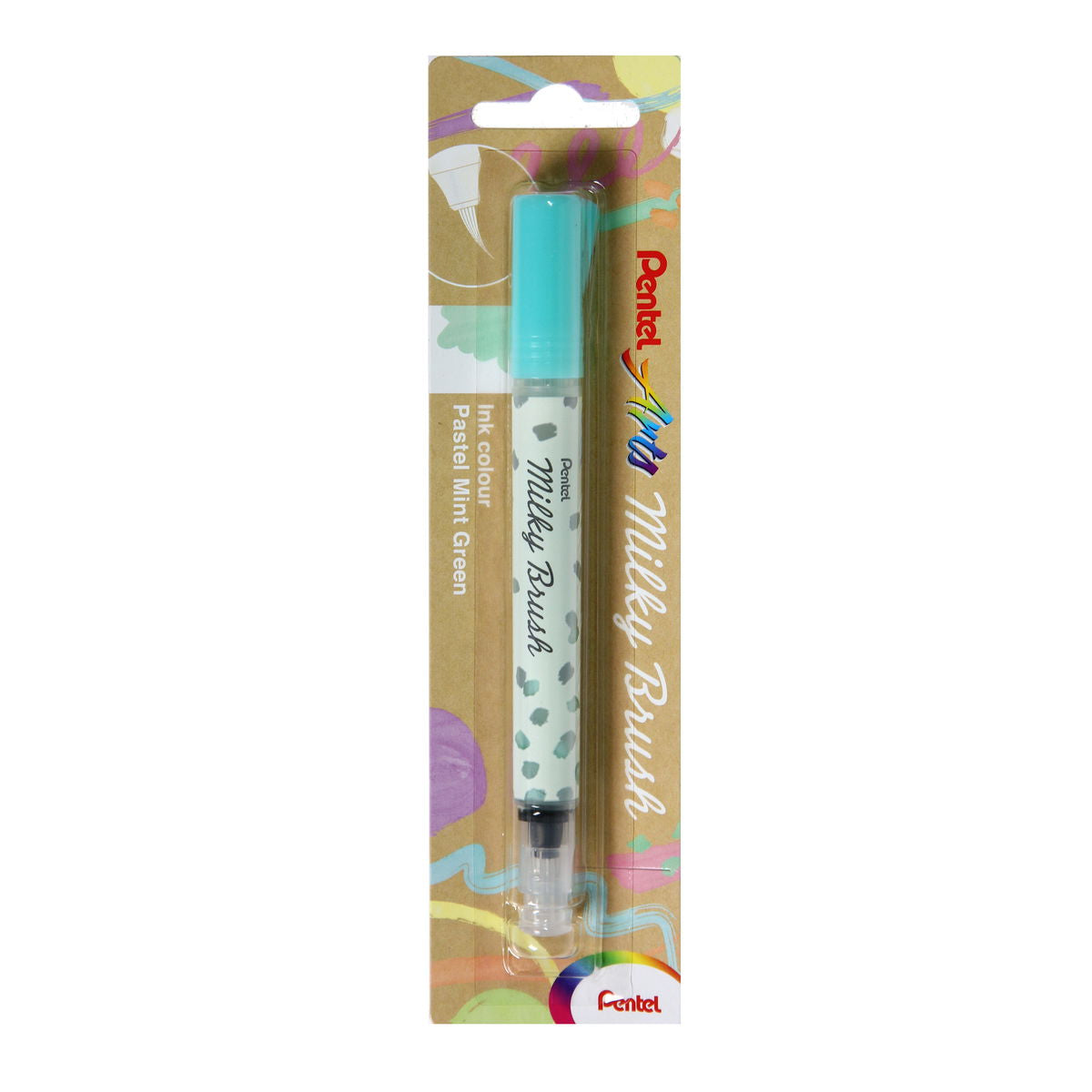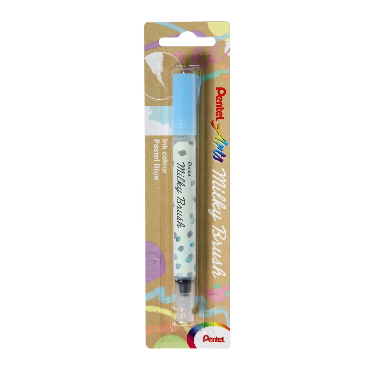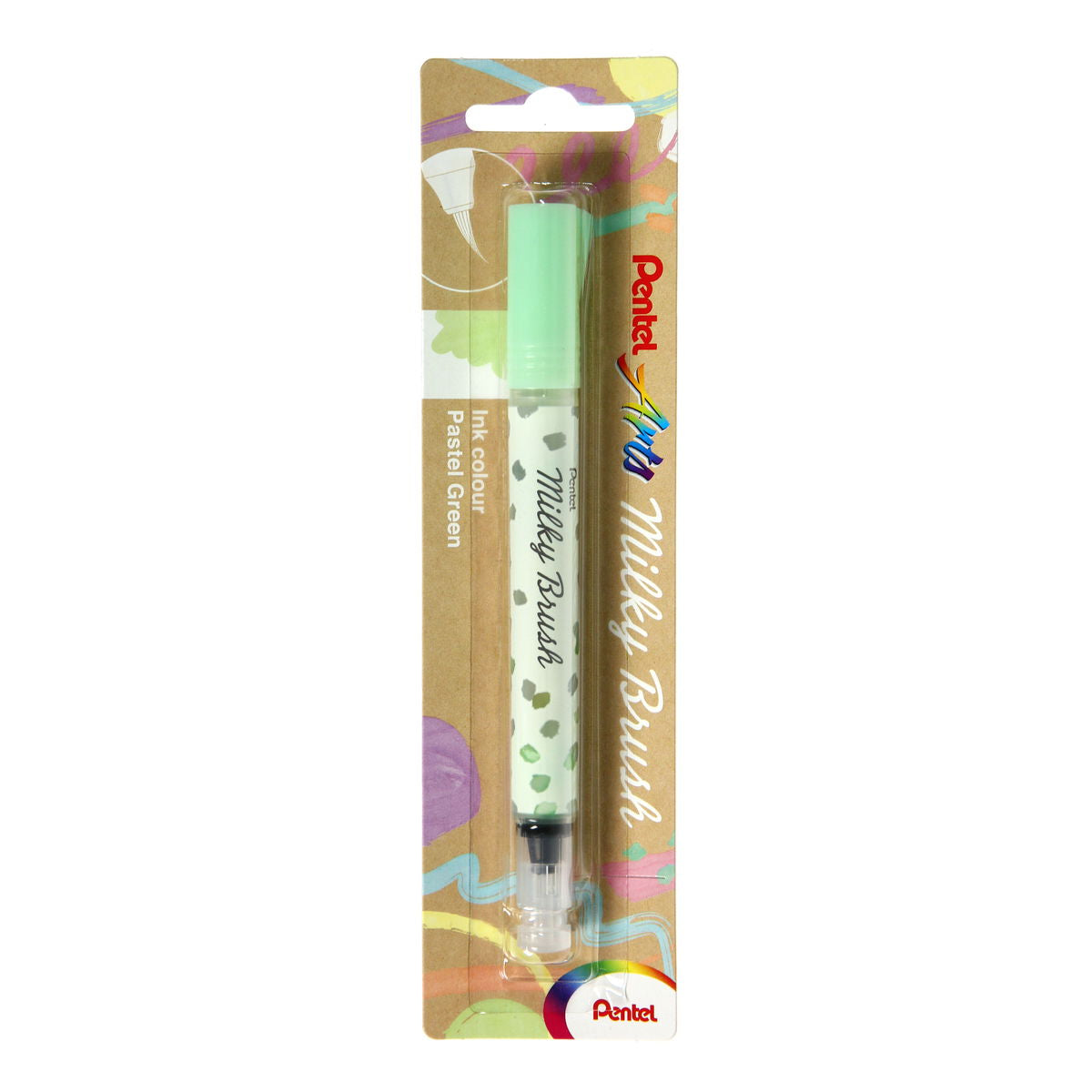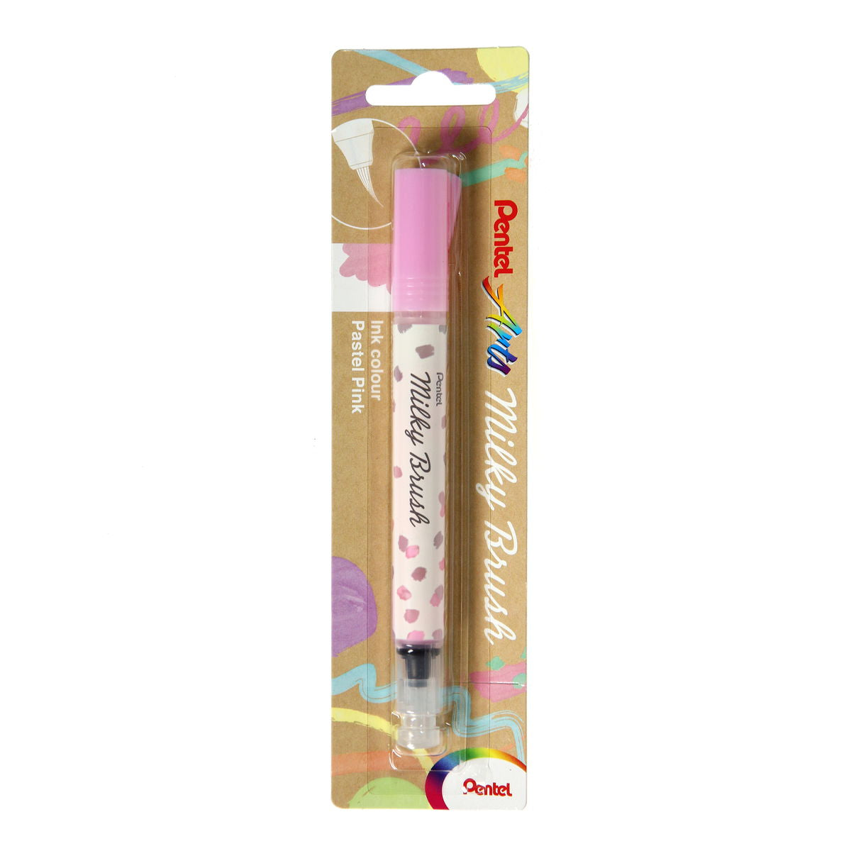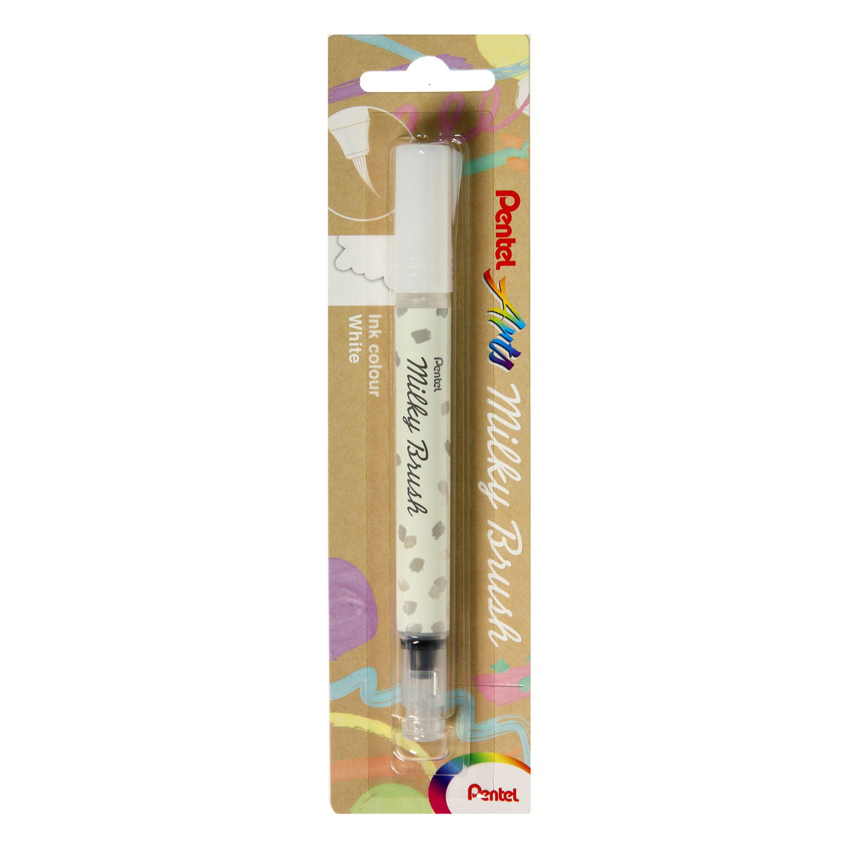 The Pentel Milky Brush Pens feature the same vivid pastel-colored inks as the original Milky Gel Pens. The inks look different on white and dark papers. The white has been requested for several years. Great for crafting, journaling and other art projects. Available in blister pacjs in 8 colors.