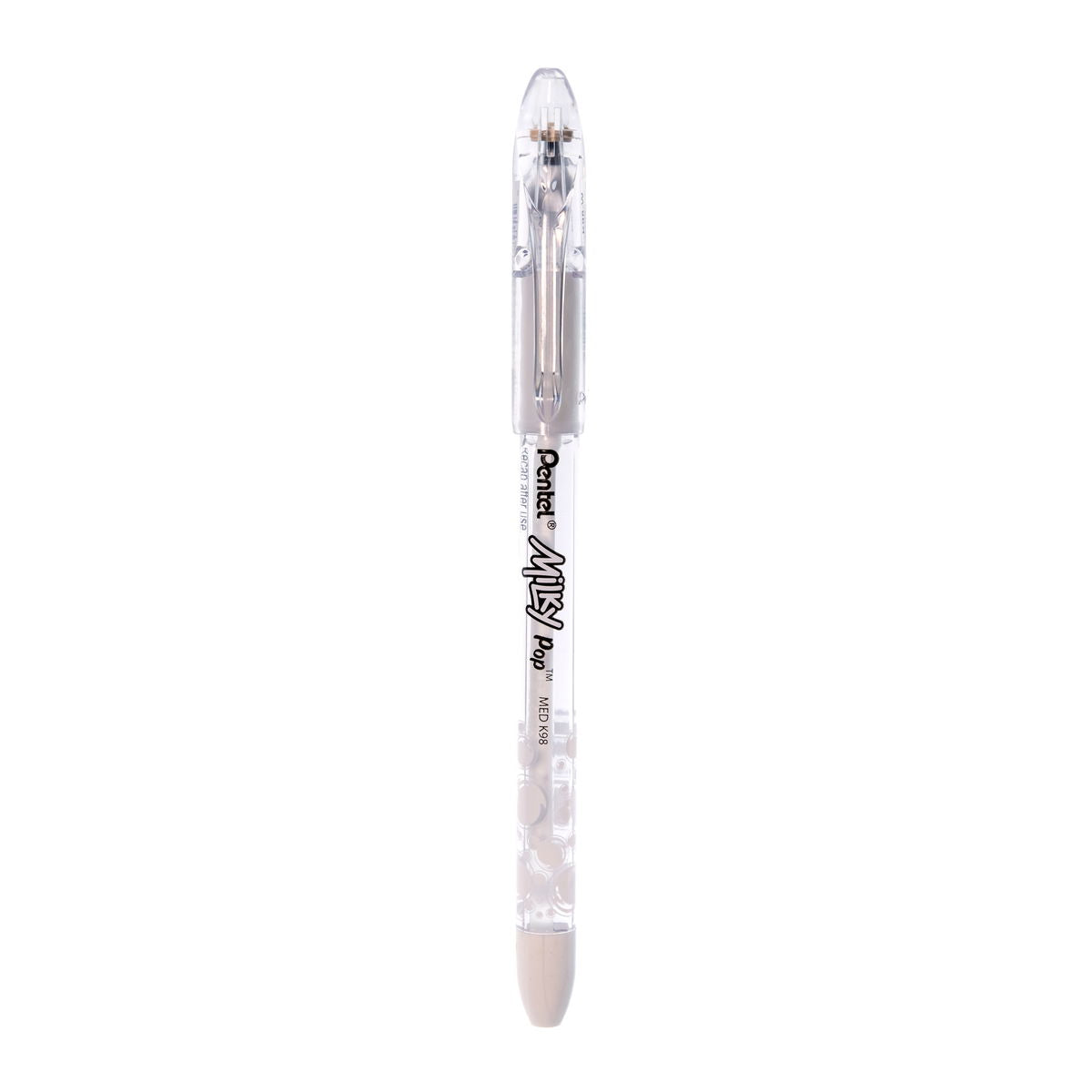 Pentel s Milky Pop Gel Pens provide the perfect way to add some pop and pizzazz to your projects! Featuring vivid pastel-colored inks, these gel pens produce contrast on both white and dark-colored paper - making them ideal for invitations, greeting cards, drawings, and more! Milky Pop s smooth, flowing gel ink is AP Certified Non-Toxic. With a latex-free finger grip and an extra-long barrel, the pen design and ink consistency provide a comfortable, effortless writing experience with maximum control.