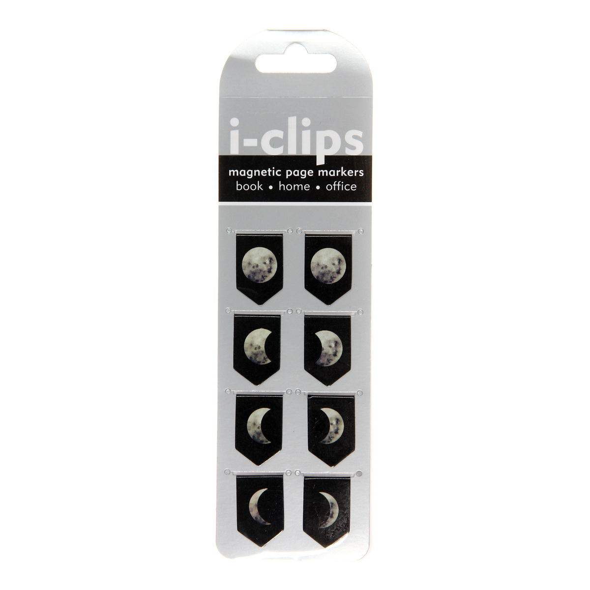 The multipurpose i-clip can be used as a secure bookmark, a fridge magnet, a paper clip and more. Laminated folding magnets feature appealing design themes. Each set of 8 i-clips is packaged in a clear plastic sleeve measuring 2.5 in. x 7 in. Each clip is .75 in. x 1 in.