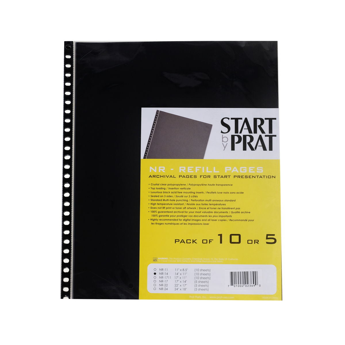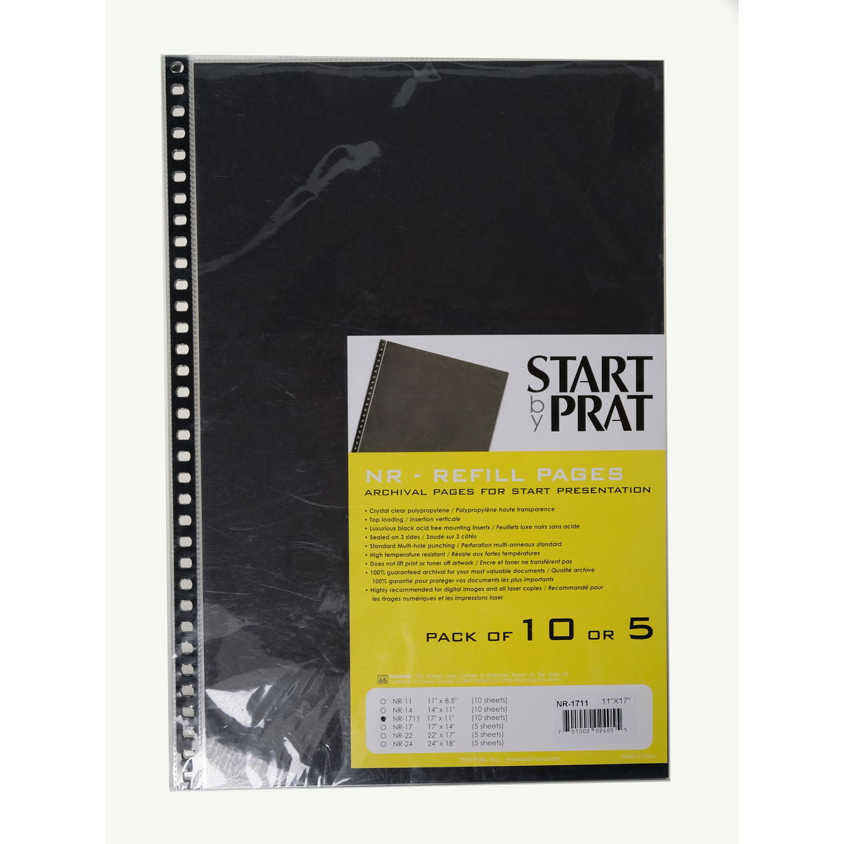 Prat Start Refill Pages present your work with a high level professional quality. The pages feature clear, heavy weight polypropylene that is archival quality and 100% acid and lignin free.