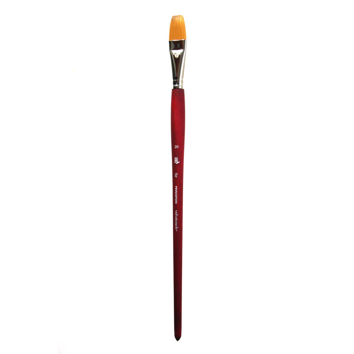 These long handle mixed media synthetic brushes work well with oil and acrylic paint. The luxe-blend multiple-filament blend offers excellent color holding capacity. Each individual brush has precision tapering for fine point and spring, a nickel-plated brass ferrule and the signature Velvetouch handle for ultimate comfort.
