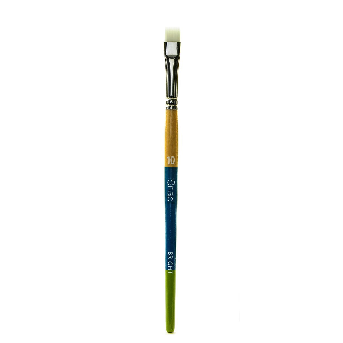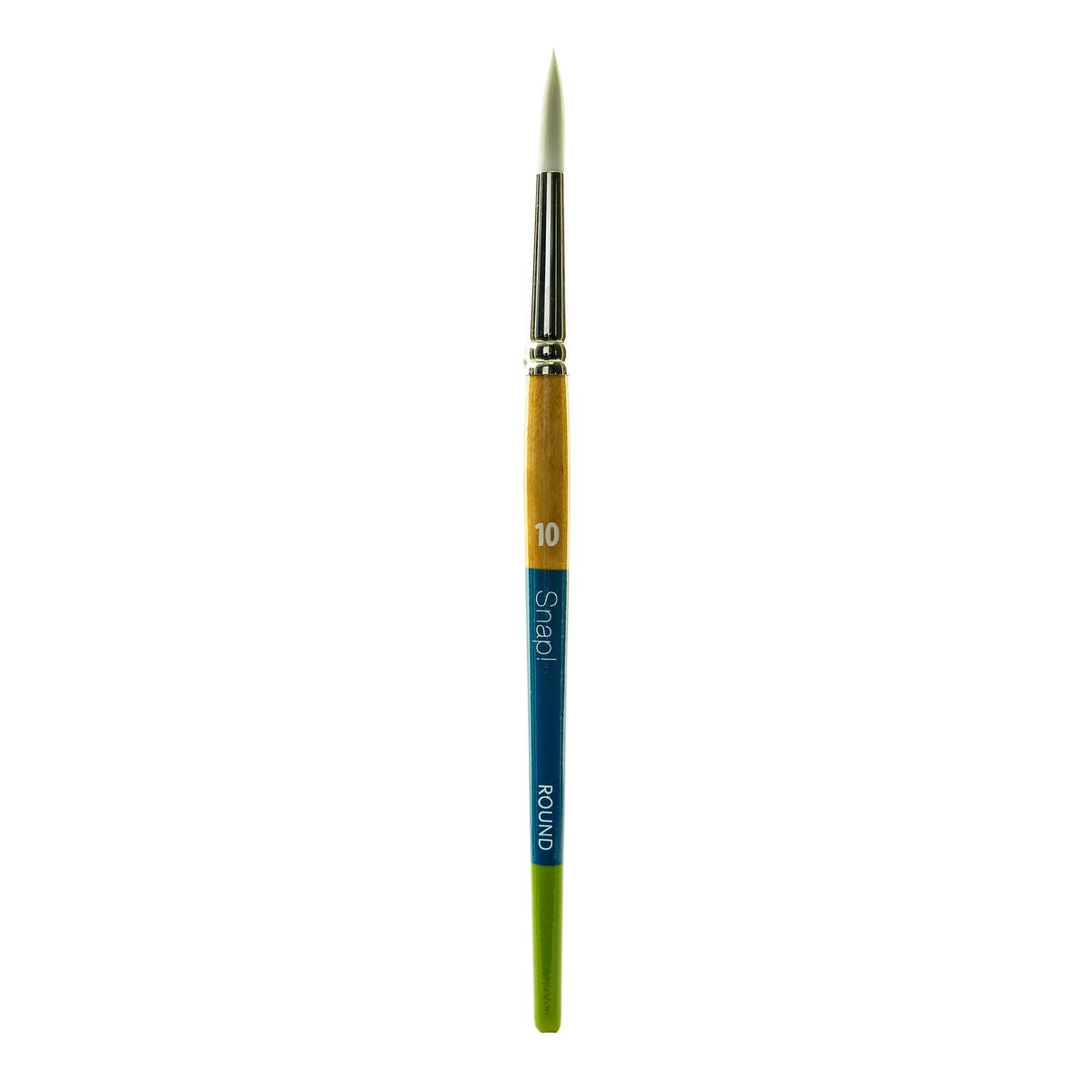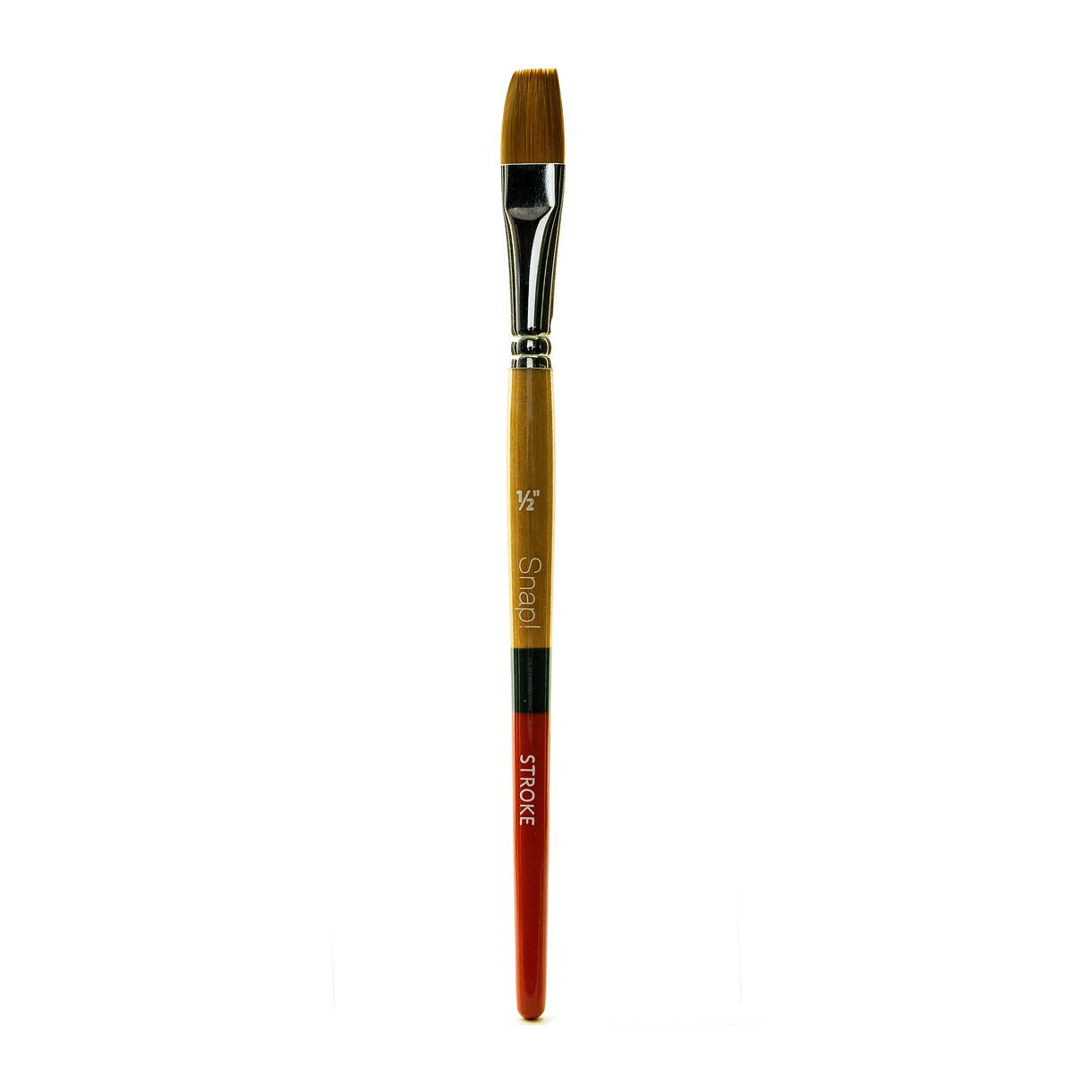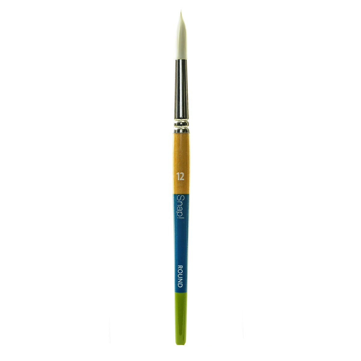 Snap! Brushes offer a well-rounded line of brushes at affordable price points. The attractive handles have a vibrant three-color paint job making them true stand-outs. The line includes 40 short handled white and golden synthetic brushes for watercolor and acrylic and 40 long handled bristle and stiffer white synthetic brushes for oil and acrylic.