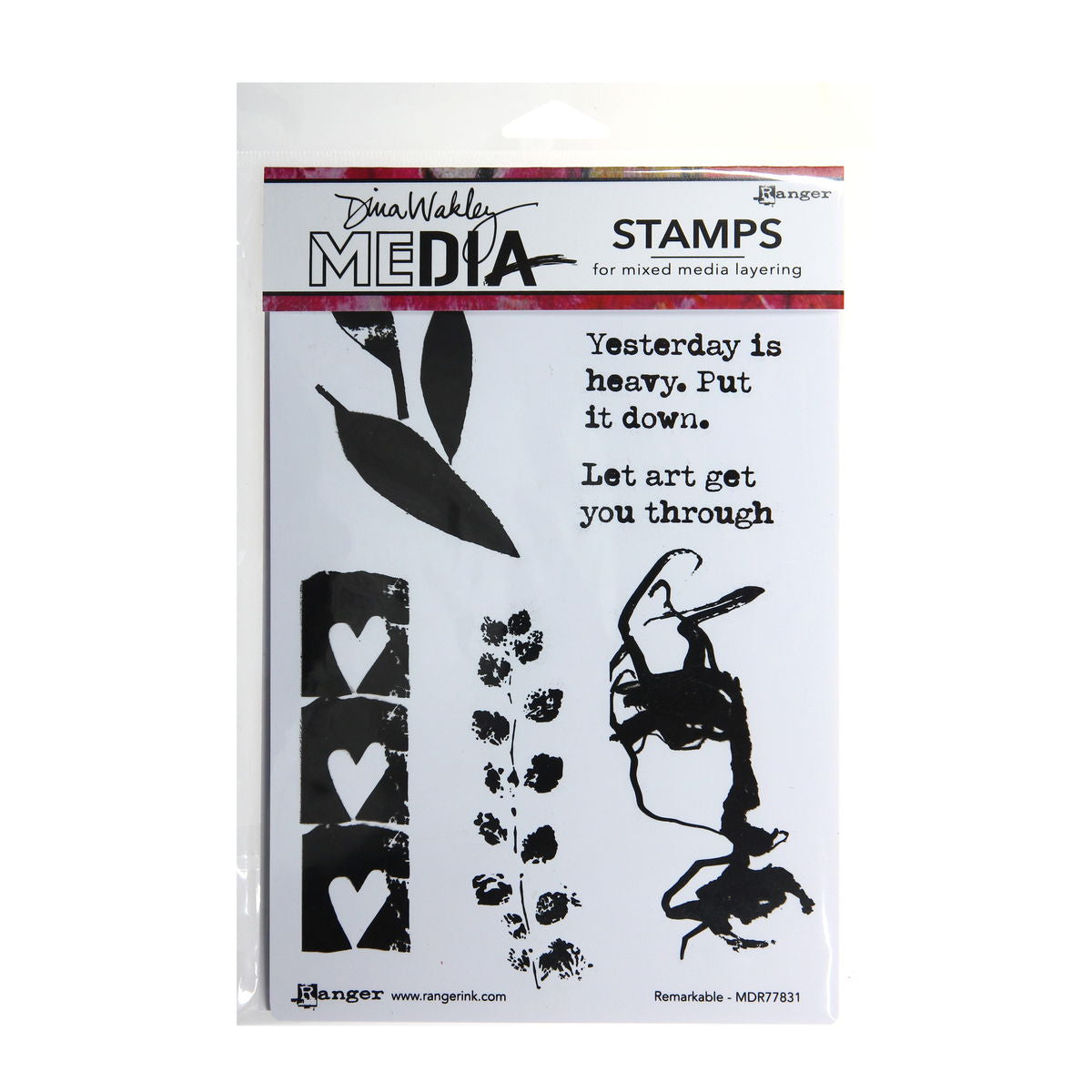Dina Wakley's Cling Mount Rubber Stamps offers a unique aesthetic for adding layers of creative design with mixed media art projects. These stamps are also great to use in journals, card making and more! Bring Dina s designs to life in your projects and mix with Dina Wakley Media Paints, Stencils, Mediums and more! Each stamp sheet has a 6 in. x 9 in. footprint.